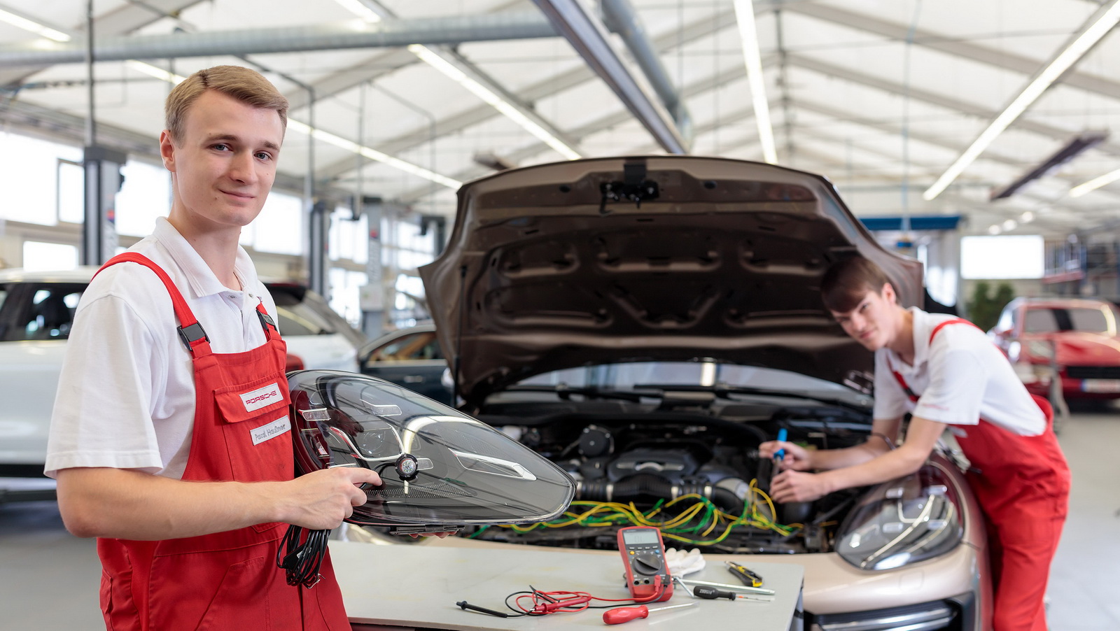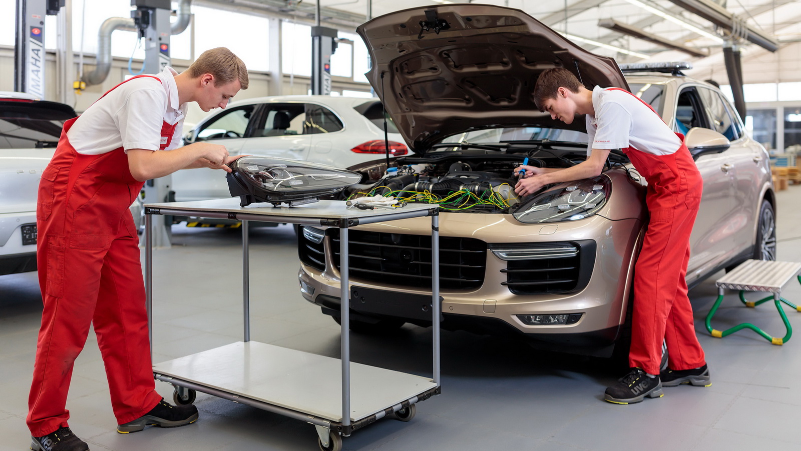 Two apprentices from the third-year automotive mechatronics at the Porsche Leipzig facility converted a Cayenne Turbo for use as a multifunctional circuit vehicle for the Sachsenring.