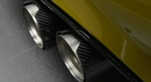Among the most significant custom touches include an M Performance body kit which incorporates a carbon fiber front splitter and front air intake surrounds. Additionally, there’s an M Performance rear diffuser and lip spoiler, carbon tailpipes, black kidney grilles and distinctive wing mirror caps. A carbon fiber hood from Manhart then completes the exterior touches.