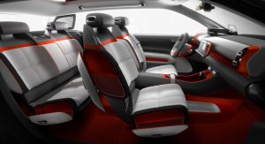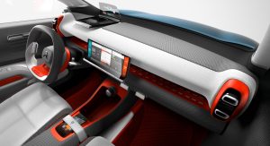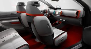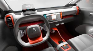 The new Citroen C-Aircross Concept also comes with two side cameras that replace the exterior mirrors, panoramic sunroof, rear-hinged doors at the rear for better accessibility (inspired by the Aircross and CXperience concepts), plus a futuristic-looking cabin, with a grey-orange color scheme, single-spoke steering wheel, head-up vision display, and a 12-inch central touchscreen.