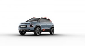 Measuring 4.15m (163.4 in) long, 1.74m (68.5 in) wide and 1.63m (64.1 in) tall, it’s quite similar to the Nissan Juke in size. In terms of design, it’s inspired by the latest generation C3, and by the C4 Cactus as well. Features include a raised bonnet, front & rear protective shields, wheel arch extensions, DRLs integrated into the grille, front bumper air inlets, air outlets built into the side door guards, and a rear diffuser.