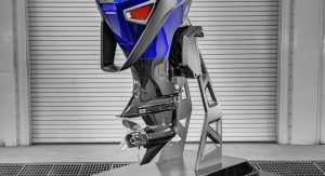 NSX references on the taller than usual outboard include the heat ducts with an interwoven design with black honeycomb mesh, a floating winged blade and the Nouvelle Blue Pearl color – though Honda pointed out that it could be painted in any shade.