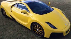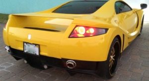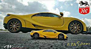 Starting life as an Infiniti Q37 with 30,000 miles (48,280 km), it received a new custom fiberglass body aping the GTA Spano, along with several carbon fiber bits and pieces. Sprayed in a yellow shade and fitted with a special set of 20-inch rims, it was then registered, titled and insured as an ASPT (custom-built vehicle) in the state of Florida, and was assigned with a new VIN.