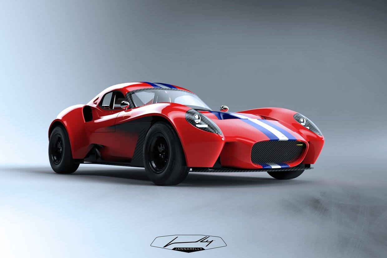 Following the preview images released over a month ago, Jannarelly Automotive is now showcasing an unusual approach to enclosing its Design-1 roadster. The solution apparently involves a solid roof structure that, rather than folding backwards as most do, is hinged forward – not unlike the canopy you’d see on many military aircraft.