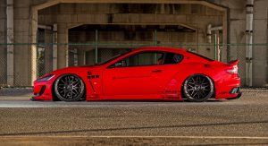 For the money, Maserati GranTurismo owners get the entire body kit, including the dramatic wheel arch extensions and a ducktail rear spoiler, while the decals and special wheel and tire combo come at an extra cost, and so does the air suspension.