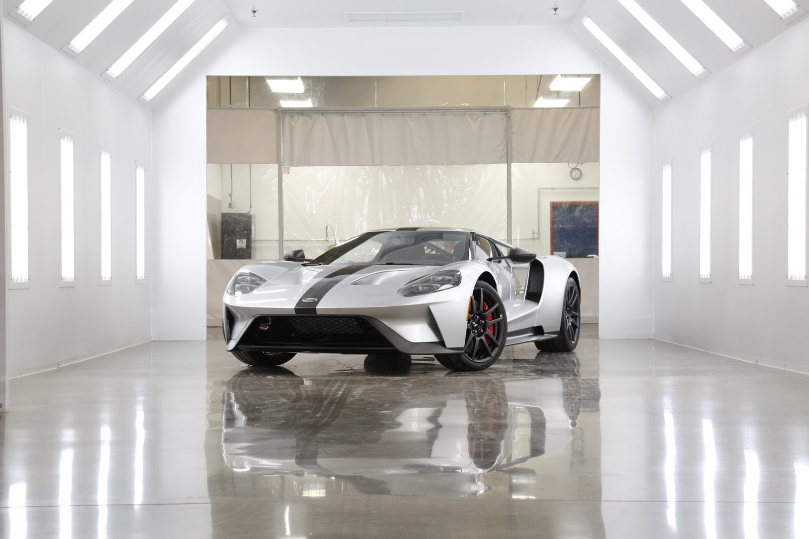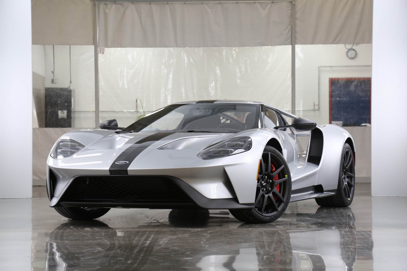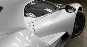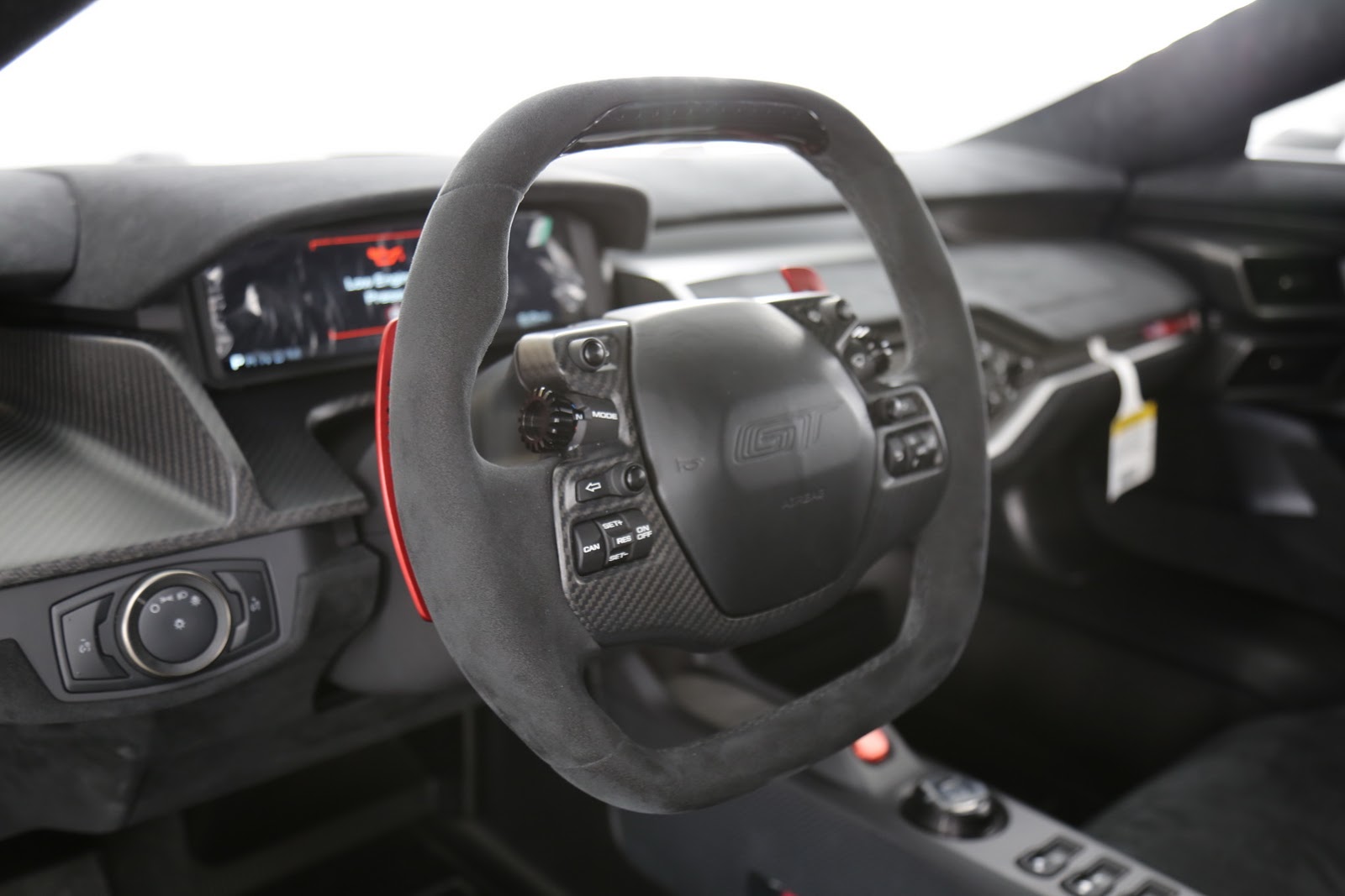 Thanks to the manual latch and the carbon fiber prop rod, weight near the roof has been reduced, though Ford engineers went even further in their quest to make the car lighter, by making the bulkhead Gorilla Glass behind the driver about half as thick (and as light) as on other models.