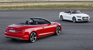 Leading the pack is of course the top-of-the-line S5 Cabriolet. It carries a £51,835 ($64,638) starting price and uses a newly developed 3.0-liter TFSI that produces 354 PS (349 HP), in conjunction with an 8-speed transmission and AWD. It needs 5.1 seconds to go from rest to 100 km/h (62 mph) and will keep accelerating up to an electronically limited top speed of 250 km/h (155 mph).