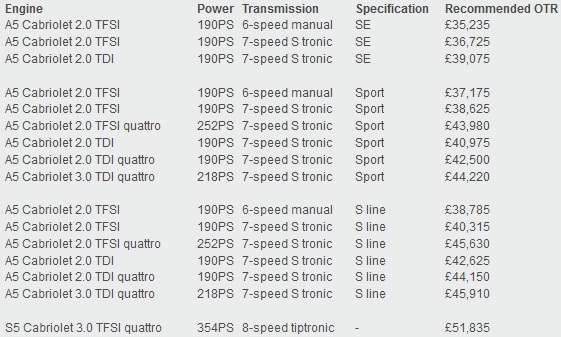 Available for order now in the UK, with deliveries starting in late April, the new generation A5 Cabriolet carries a starting price of £35,235 ($43,938) OTR for the entry-level SE model.