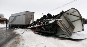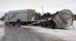 A large transporter carrying Porsche test cars crashed in Sweden today.