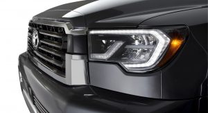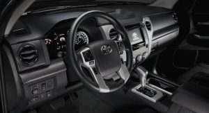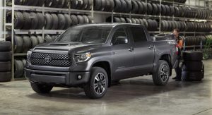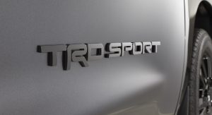 As for styling changes, TRD Sport Tundra models get color-keyed mirrors, hood scoop and front & rear bumpers, 20″ alloy silver sport wheels, the LED headlights, fog lights and DRLs, mesh grille with body color surround and a TRD Sport-specific bedside graphic. Exterior colors include Super White, Magnetic Gray, Midnight Black Pearl, Blazing Blue Pearl and Barcelona Red Metallic, while inside you get a TRD shift knob and TRD Sport floor mats.