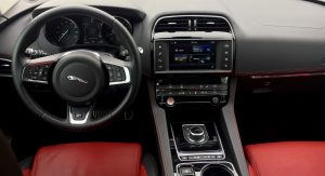 The design flourishes are toned down inside, where ergonomic compromises also come into play. Jaguar’s mainstream models have become a tad staid in the interior department, which is a problem when you have rivals from Audi and Volvo continuing to create inviting cockpits. Going for the R-Sport package does add some color to what would normally be a dark place, although the vast glass roof covers both rows of seats and let some of that January gray Detroit light in.