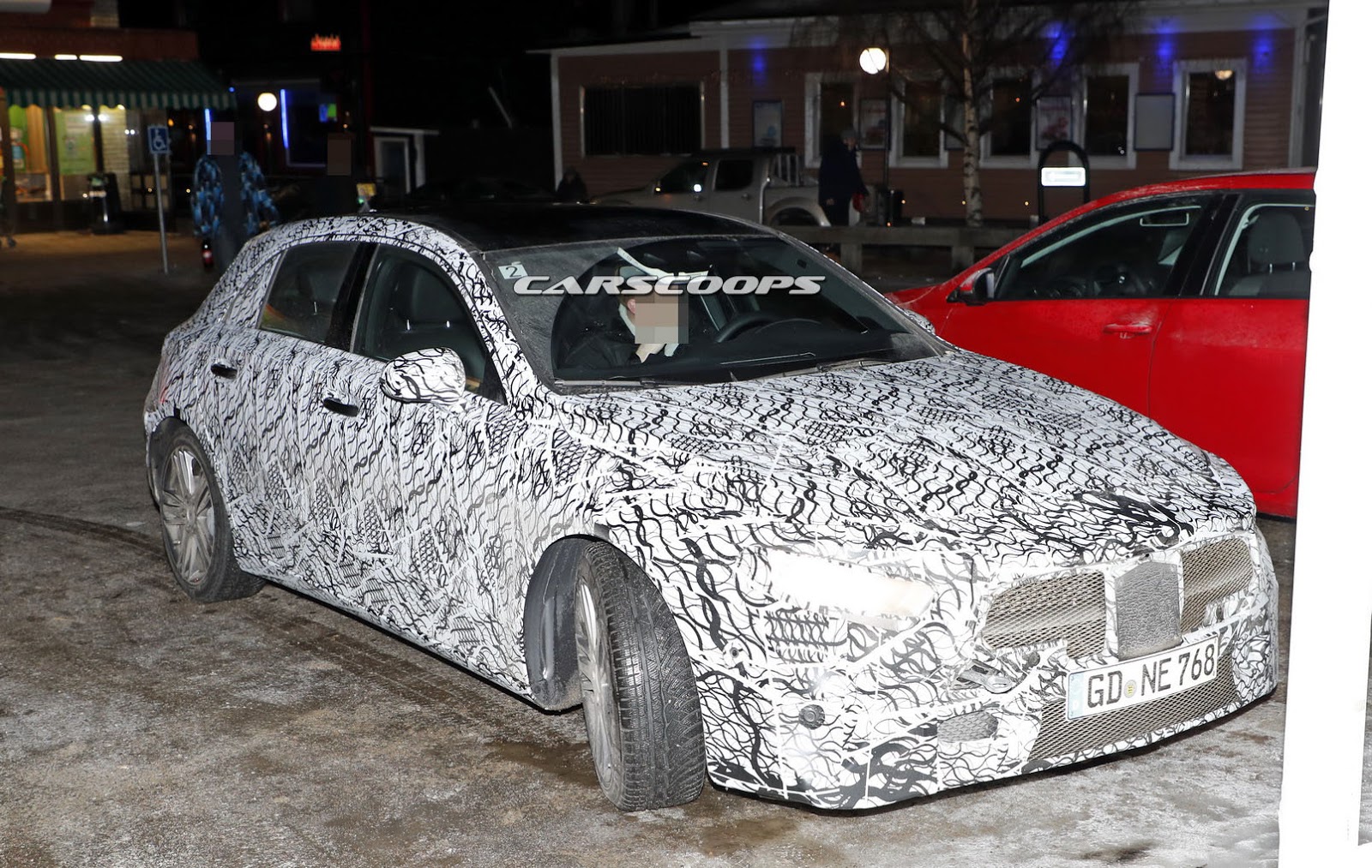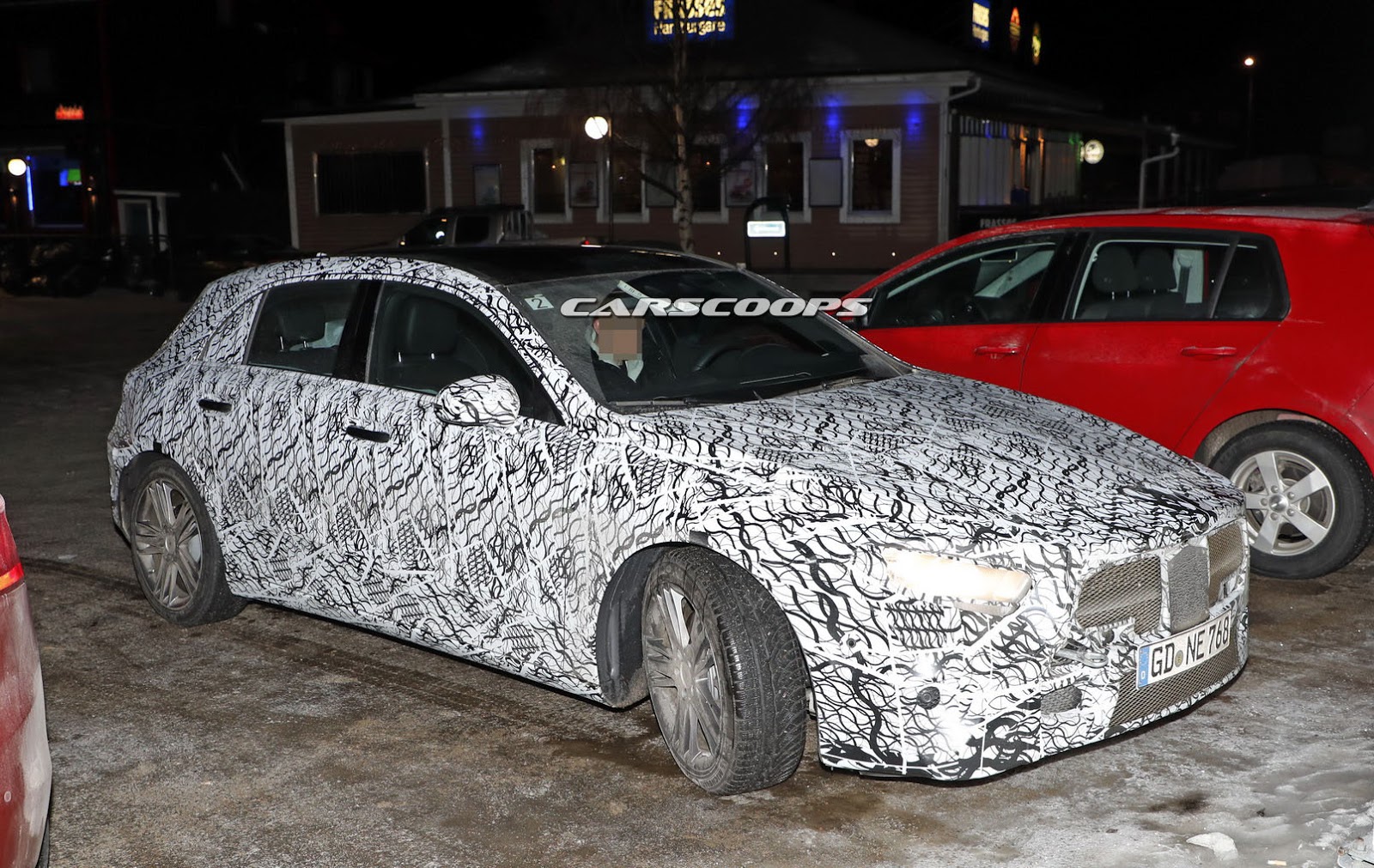 On the outside, we can now see the sleeker and lower front end as well as the thinner headlights – a sort of AMG GT-style design. However, despite the camo being lighter, we still can’t make out the exact shape of the taillights.