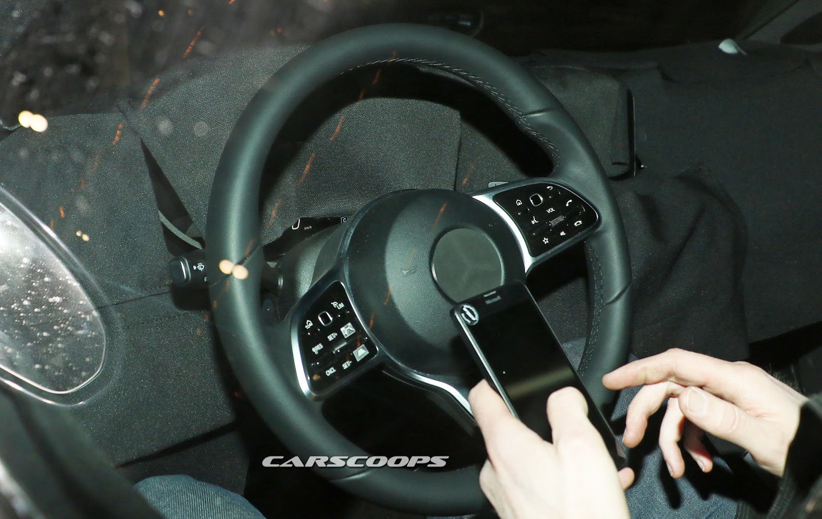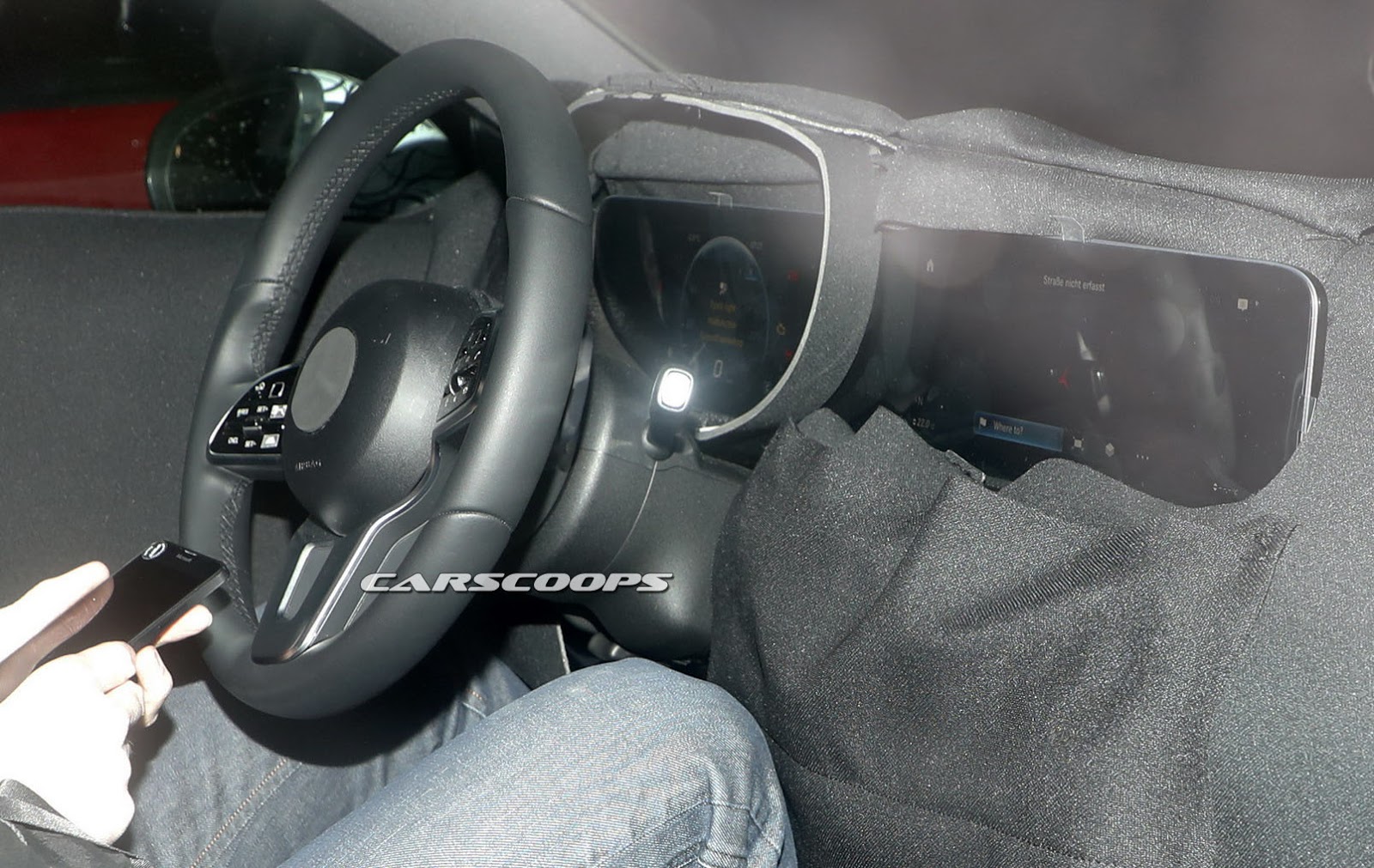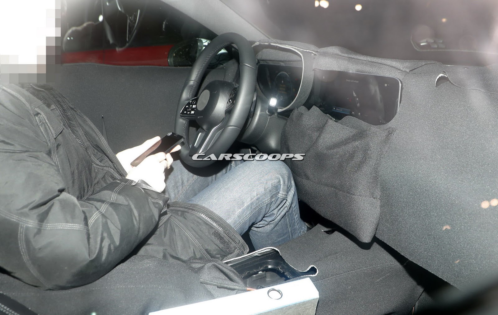 Aside from the display, it almost seems like the car has a floating dashboard design, with the console sitting clearly below the upper-dash. It might be a new design altogether, or simply something similar to the new E-Class where the console tilts up towards the air vents.