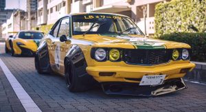 It even has the same yellow and green paint scheme as a particularly insane Liberty Walk McLaren 650S. However, don’t think for a second this RX-3 is all show and no go.