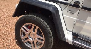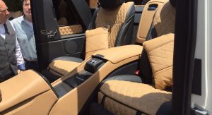 The G650 Landaulet is based on the lifted chassis of the G500 4×4 Squared but instead of the biturbo V8 found there, it uses the company’s V12 engine, reportedly tuned for 630hp. The other difference is that the wheelbase is now extended, thus creating more room for the privileged passengers at the rear.