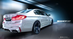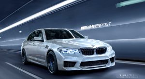 These renderings come courtesy of Bimmerpost, and the design changes make the new M5 appear more aggressive than the older F10 version. Also, the carbon fiber roof is a nice touch and the M mirrors fit right in with the car’s overall sporty styling.