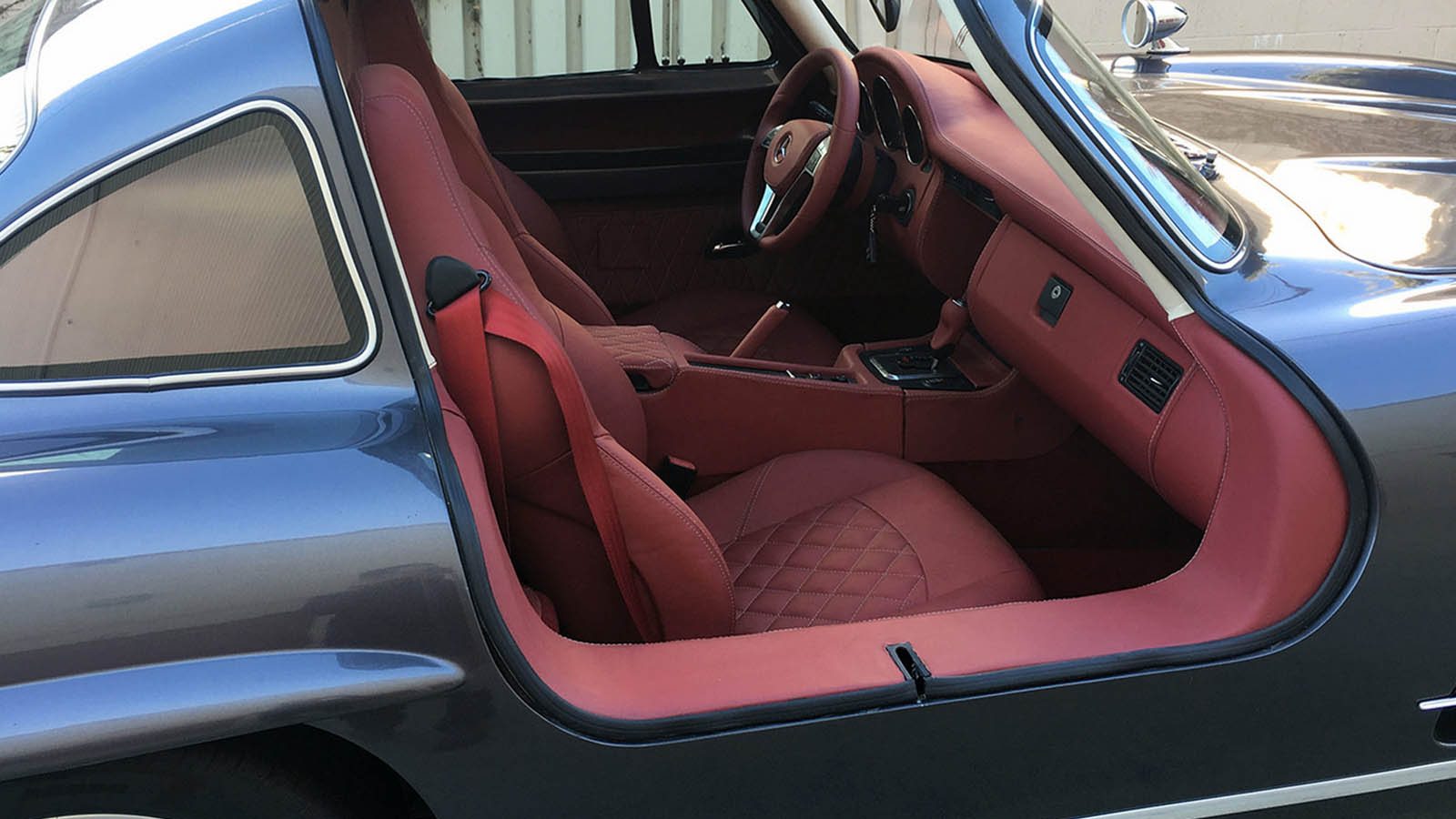 Up for grabs in Los Angeles this weekend, Mecum Auctions has this 2002 Mercedes-Benz SLK that’s been rebodied in fiberglass to resemble a classic 300 SL. And resemble it does in rather convincing style, we might add – judging from the photos at least. The color combination of dark grey on the outside and deep red inside certainly doesn’t hurt, though the (easily replaced) modern alloys kinda give it away.