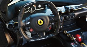 Chassis number ZFF76ZFA2F0210482 was also equipped with $124,000 of added options, including roof panel, wing mirrors, fog lamp surrounds, dashboard, and more – all decked out in bare carbon fiber.