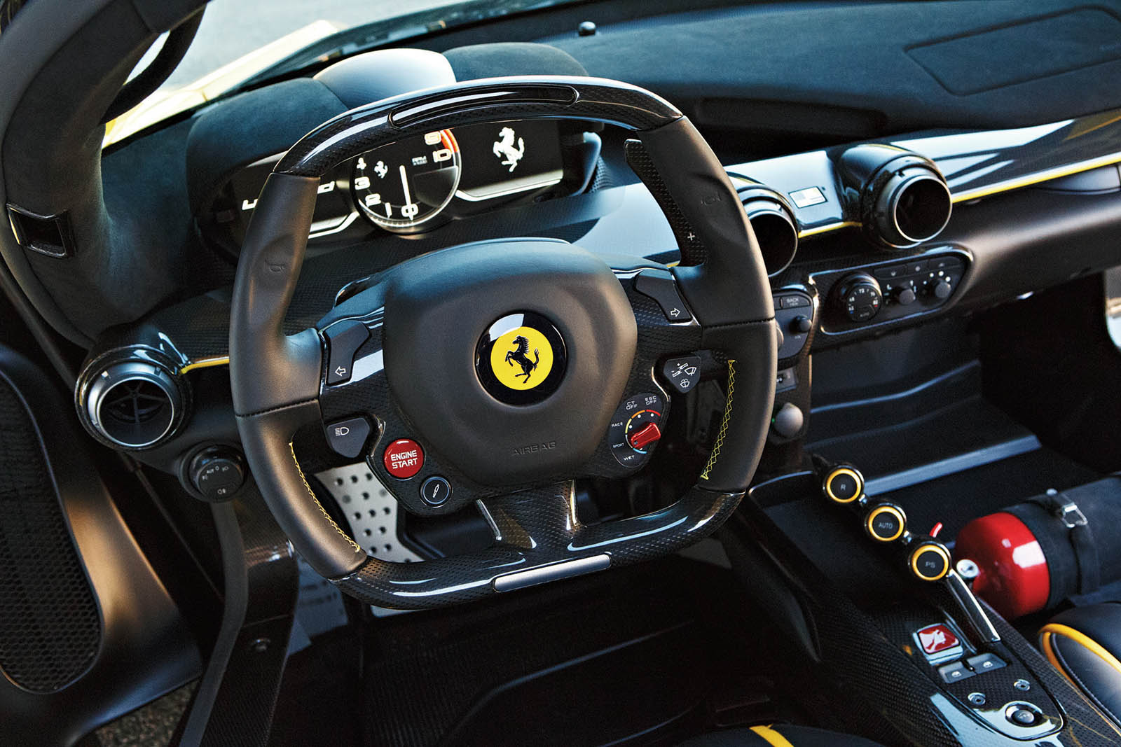 While the vast majority of LaFerraris appear to have left the factory in classic Rosso Corsa, a handful were ordered in other colors. Like this one, which was special-ordered in Giallo Triplo Strato.