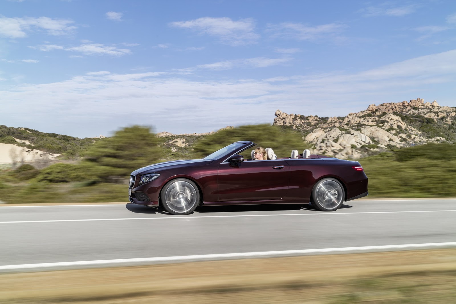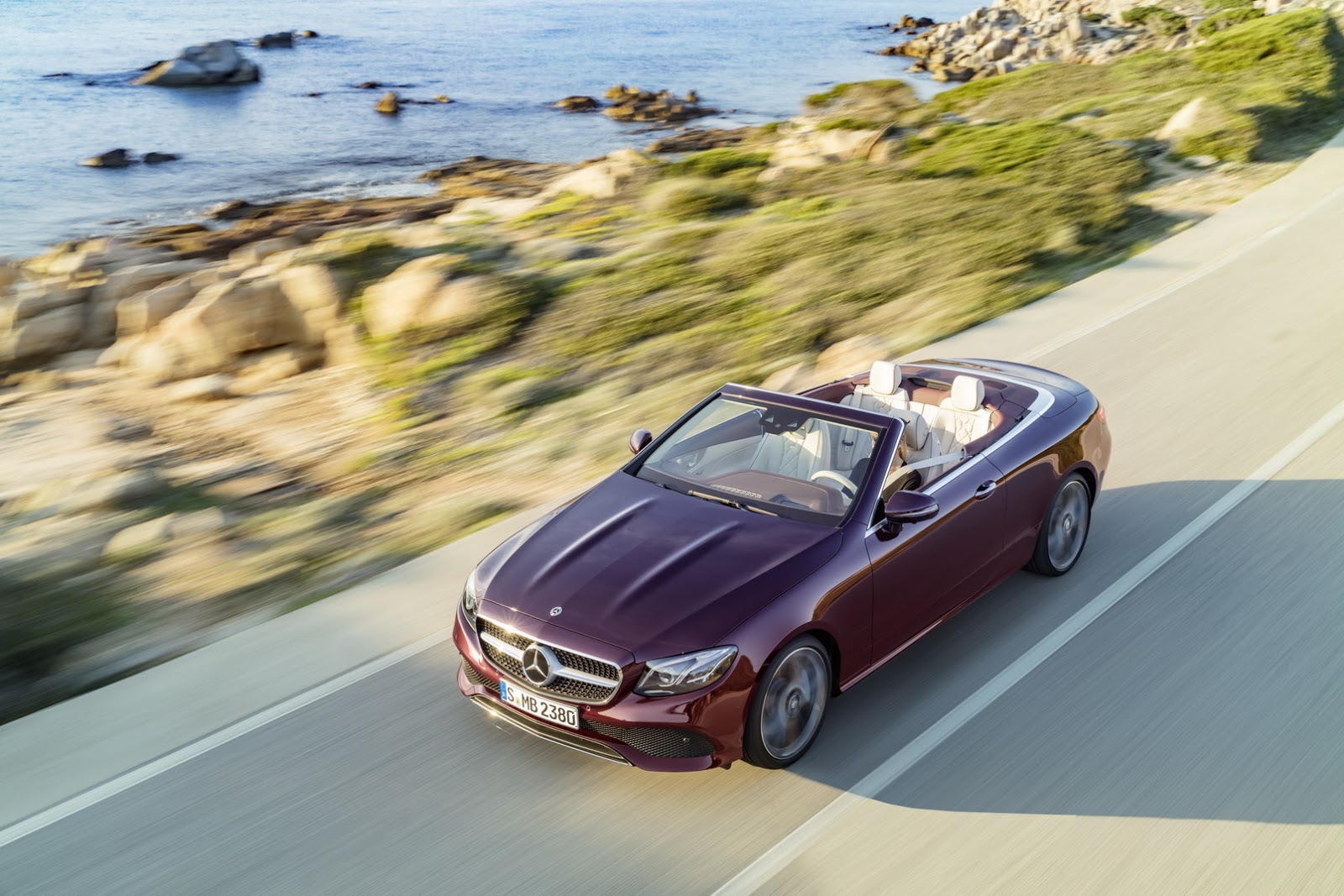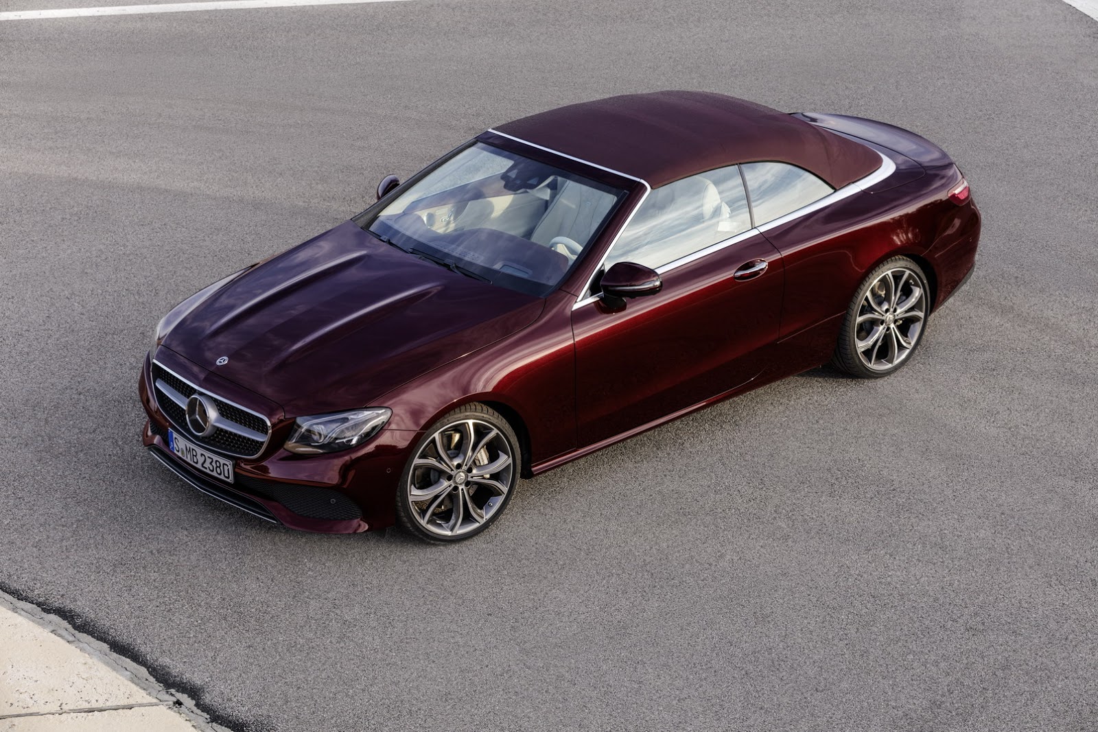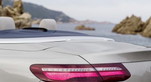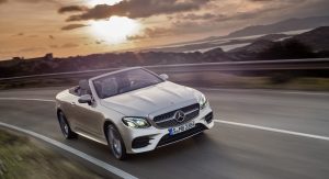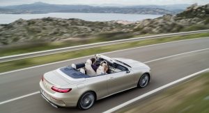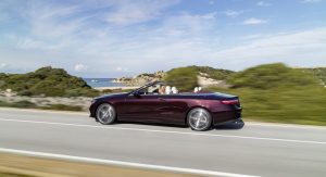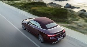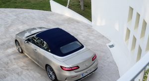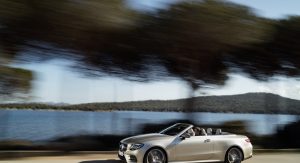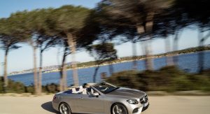 The E-Class’ fabric soft top is available in dark brown, dark blue, dark red or black, and can be fully opened and closed in 20 seconds when travelling at a speed of up to 50 km/h (31 mph). It stores under a retractable cover with Mercedes promising a reasonable boot capacity of 385 liters, reduced to 310 liters when the roof is stowed.