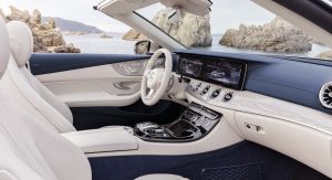 For the first time, Mercedes will give buyers the option of all-wheel drive, which it calls 4MATIC. The Germans haven’t fully detailed the lineup yet, but said North America will get a 3.0L V6 biturbo engine paired to a standard 9G-TRONIC nine-speed automatic transmission, which produces 329hp in the E400 Coupe. An E50 AMG variant with well over 400 horses from a 3.0L V6 turbo, should be in the Convertible’s future too.
