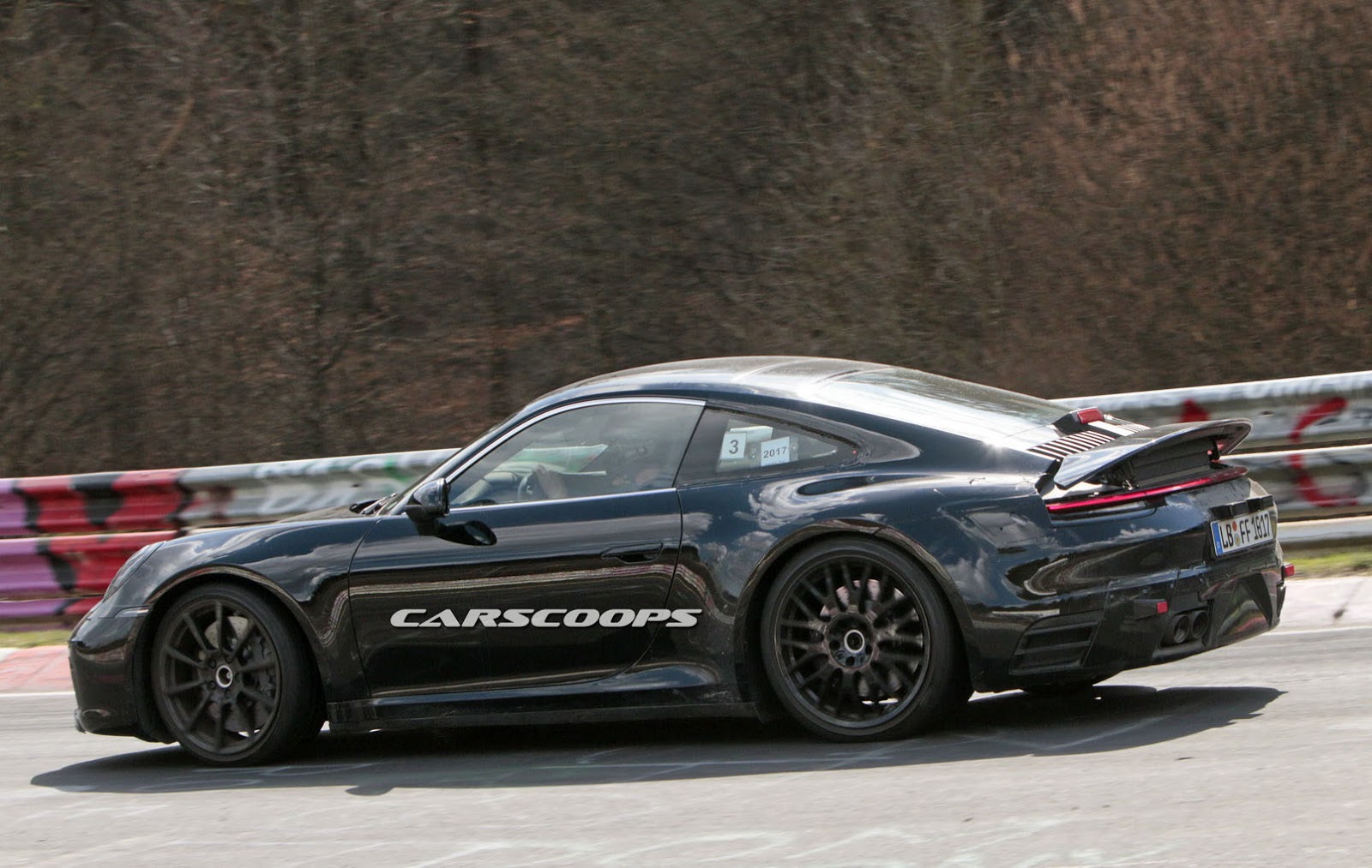 The biggest visual changes of the new 911 are to be found in the rear, where it looks like Porsche is going to use a LED stripe across the width of the car, copying the style of the Mission E concept. And because everyone loves a nicely done rear wing, Porsche is going to add a wide adjustable spoiler that sits flush with the body when not it use.