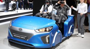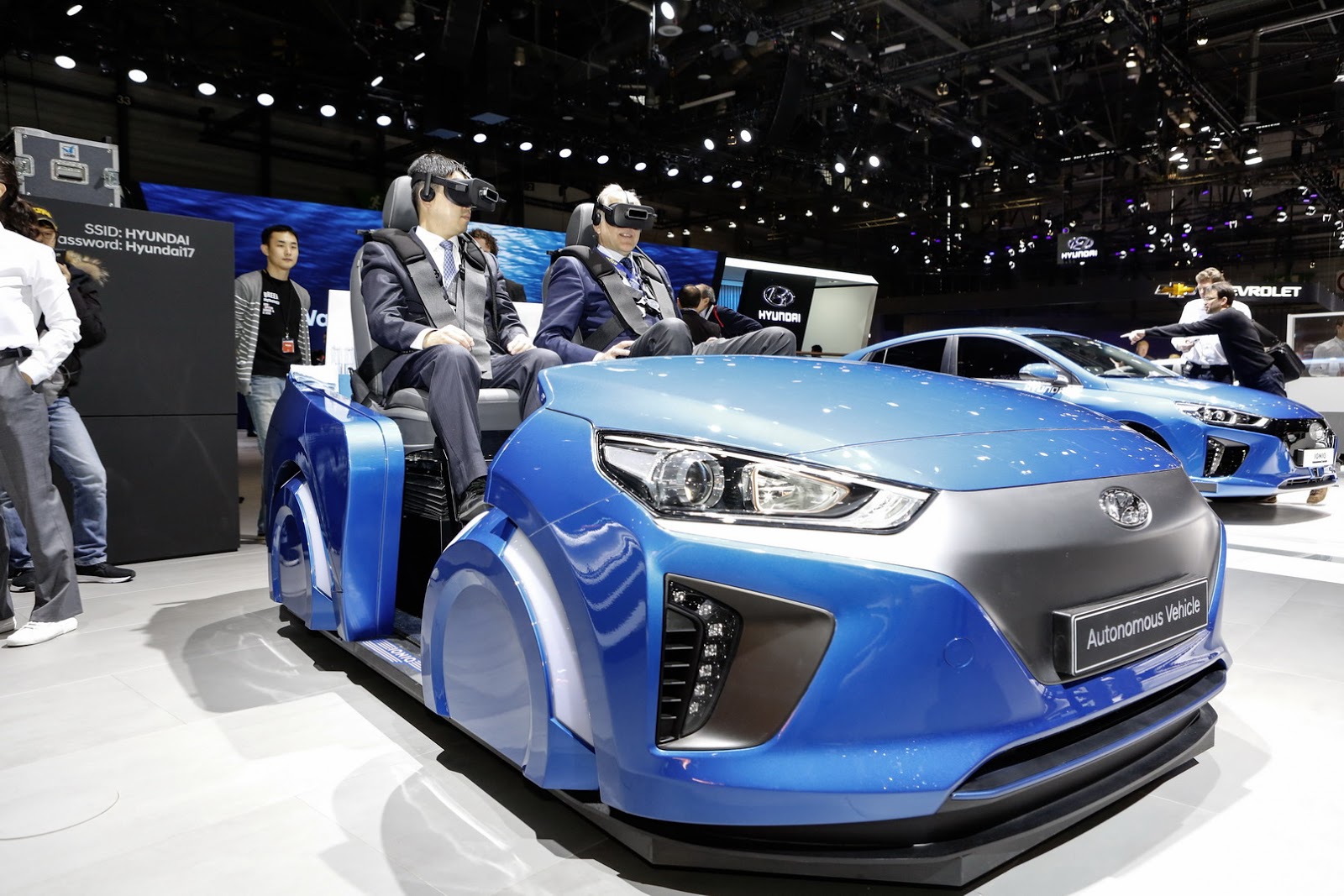 Hyundai is allowing visitors at the 2017 Geneva Motor Show to experience a drive in an autonomous car at the stand through two virtual-reality cockpits.