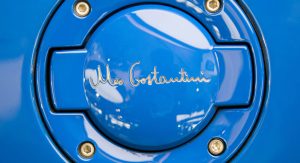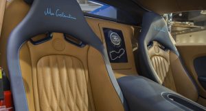 This one honored Italian pilot Meo Costantini, a WWI flying ace who went on to race for (and then run) Bugatti’s racing division in the 1920s and ’30s. It was done up in a two-tone exterior consisting of French racing blue and mirror-finish chrome, with a rather striking navy and light brown interior, and like the others in the series, incorporated an array of little “Easter eggs,” from Costantini’s signature on the fuel cap to the rearing elephant logo (from the legendary Royale) on the transmission tunnel in the footwell.