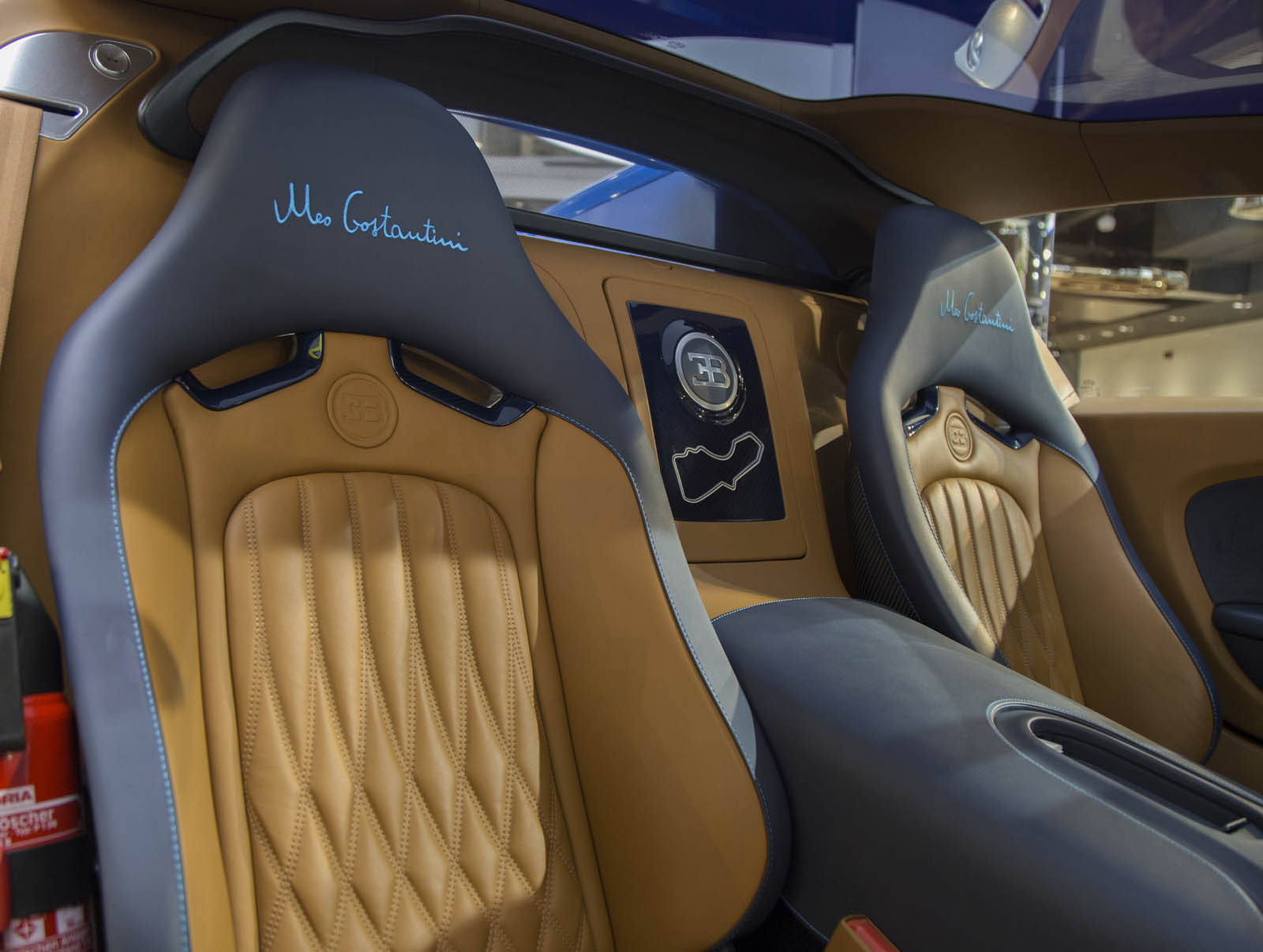This one honored Italian pilot Meo Costantini, a WWI flying ace who went on to race for (and then run) Bugatti’s racing division in the 1920s and ’30s. It was done up in a two-tone exterior consisting of French racing blue and mirror-finish chrome, with a rather striking navy and light brown interior, and like the others in the series, incorporated an array of little “Easter eggs,” from Costantini’s signature on the fuel cap to the rearing elephant logo (from the legendary Royale) on the transmission tunnel in the footwell.