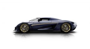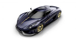 Christian von Koenigsegg has wrapped his own virtual Regera in the colors of the Swedish flag. Only instead of a bright blue and yellow, the founder has chosen deep blue-tinted carbon fiber with gold accents.