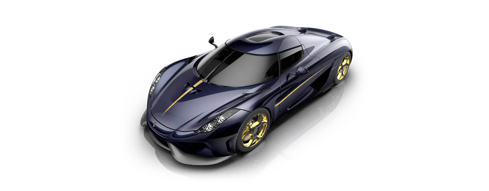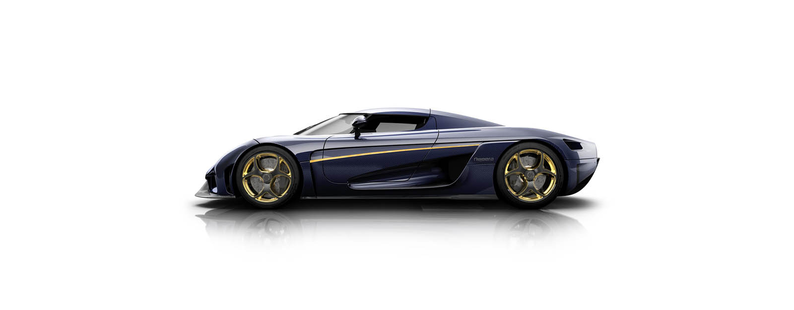 Christian von Koenigsegg has wrapped his own virtual Regera in the colors of the Swedish flag. Only instead of a bright blue and yellow, the founder has chosen deep blue-tinted carbon fiber with gold accents.