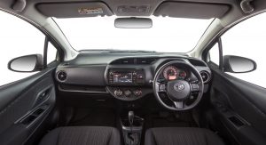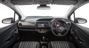 All version of the 2017 Toyota Yaris are well equipped and come with a display audio system, multi-function steering wheel, air-con, and power windows, among others, whereas the mid-range SX adds front fog lamps, rear privacy glass, and premium steering wheel and gear-shifter. The top line ZR brings automatic climate control, sat-nav, Toyota Link connected mobility, auto-leveling headlights and rear spoiler.