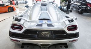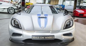 In one corner we have a Koenigsegg Agera listed for sale in Dubai for the equivalent of $1.36 million. It’s a silver example made in 2012 in standard spec, so the 5.0-liter twin-turbo V8 produces “only” 927 horsepower here – not the thousand-plus offered in later versions (though something tells us the factory would be amenable to upgrading it after the fact).