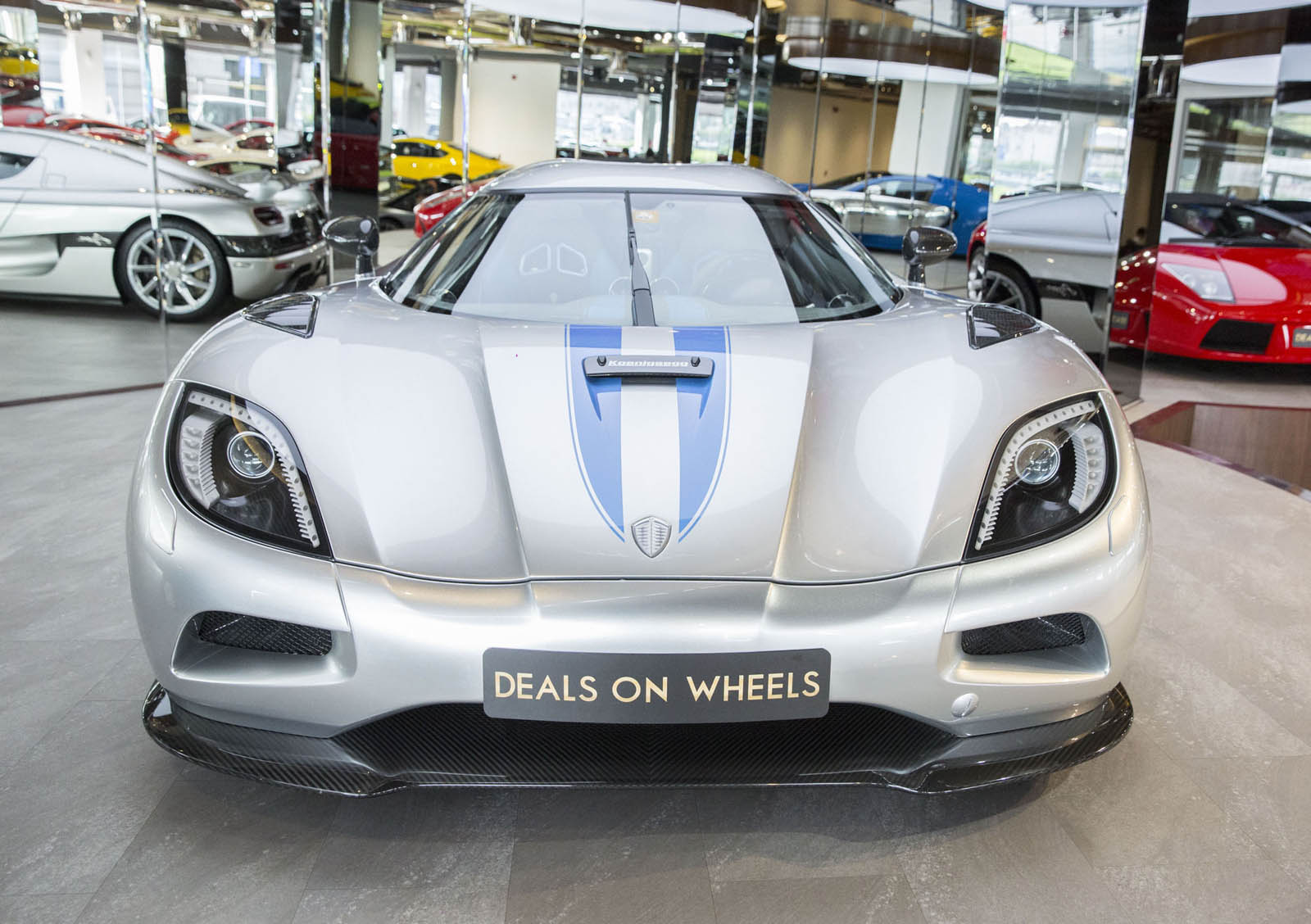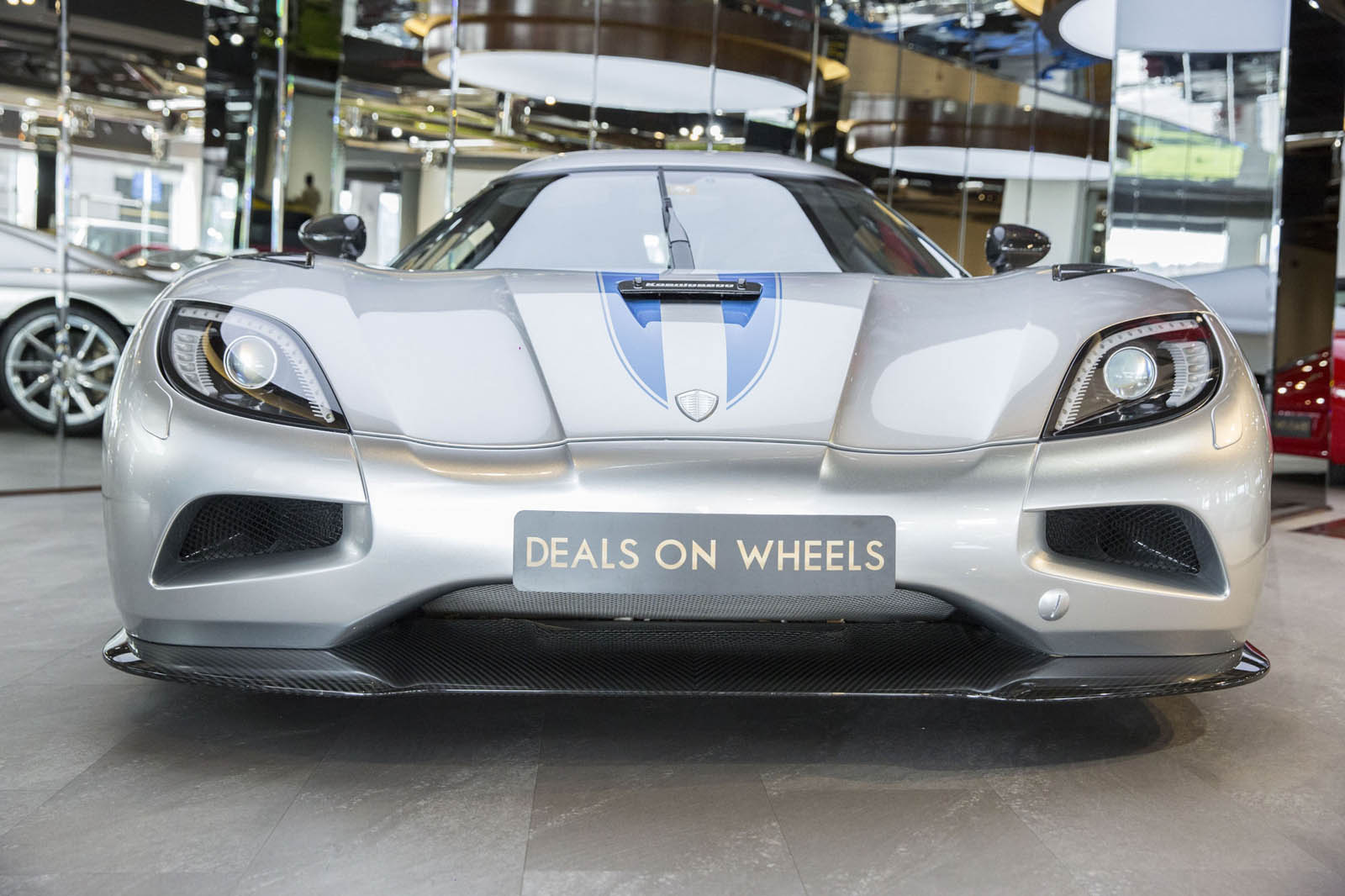 In one corner we have a Koenigsegg Agera listed for sale in Dubai for the equivalent of $1.36 million. It’s a silver example made in 2012 in standard spec, so the 5.0-liter twin-turbo V8 produces “only” 927 horsepower here – not the thousand-plus offered in later versions (though something tells us the factory would be amenable to upgrading it after the fact).