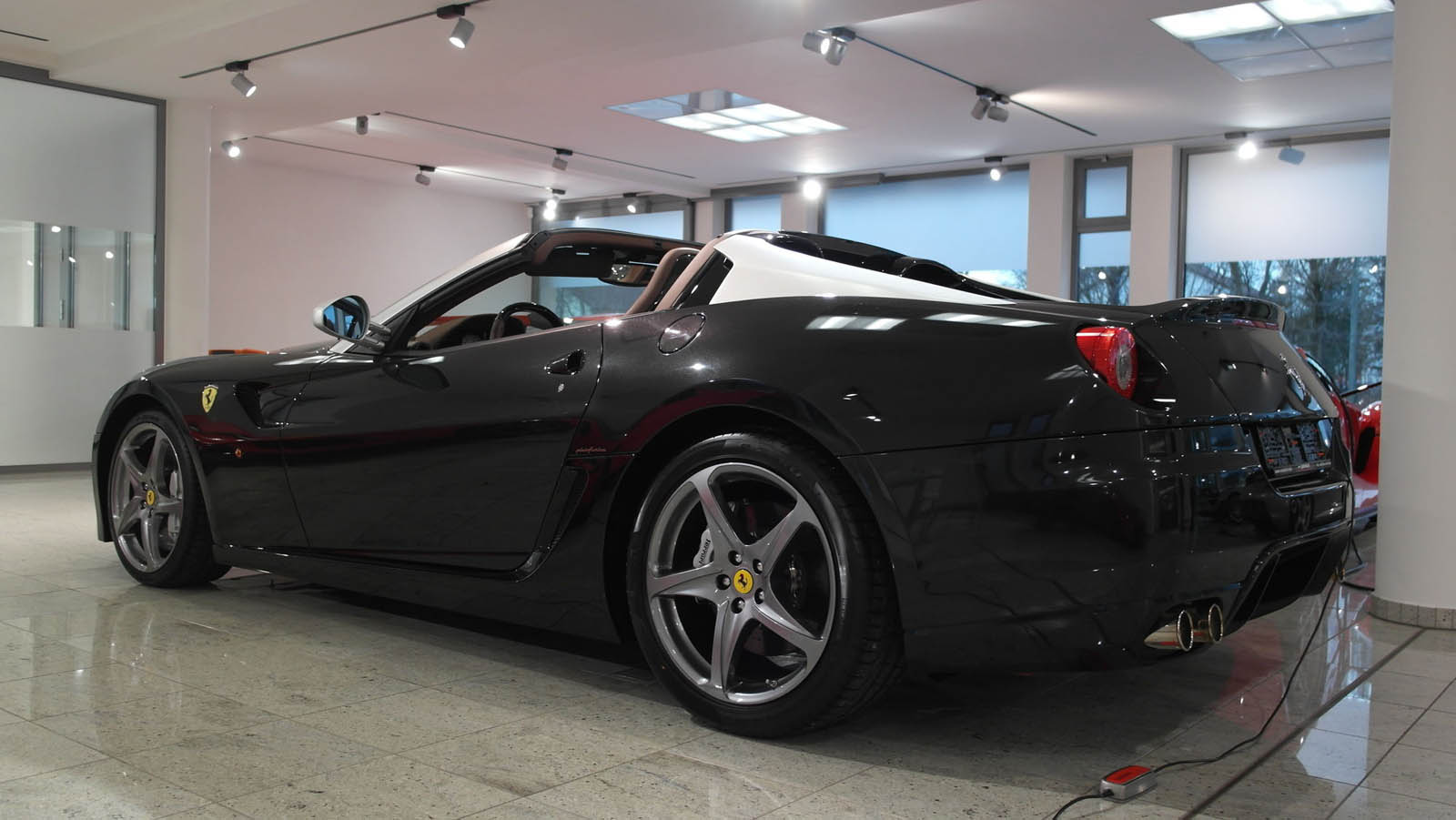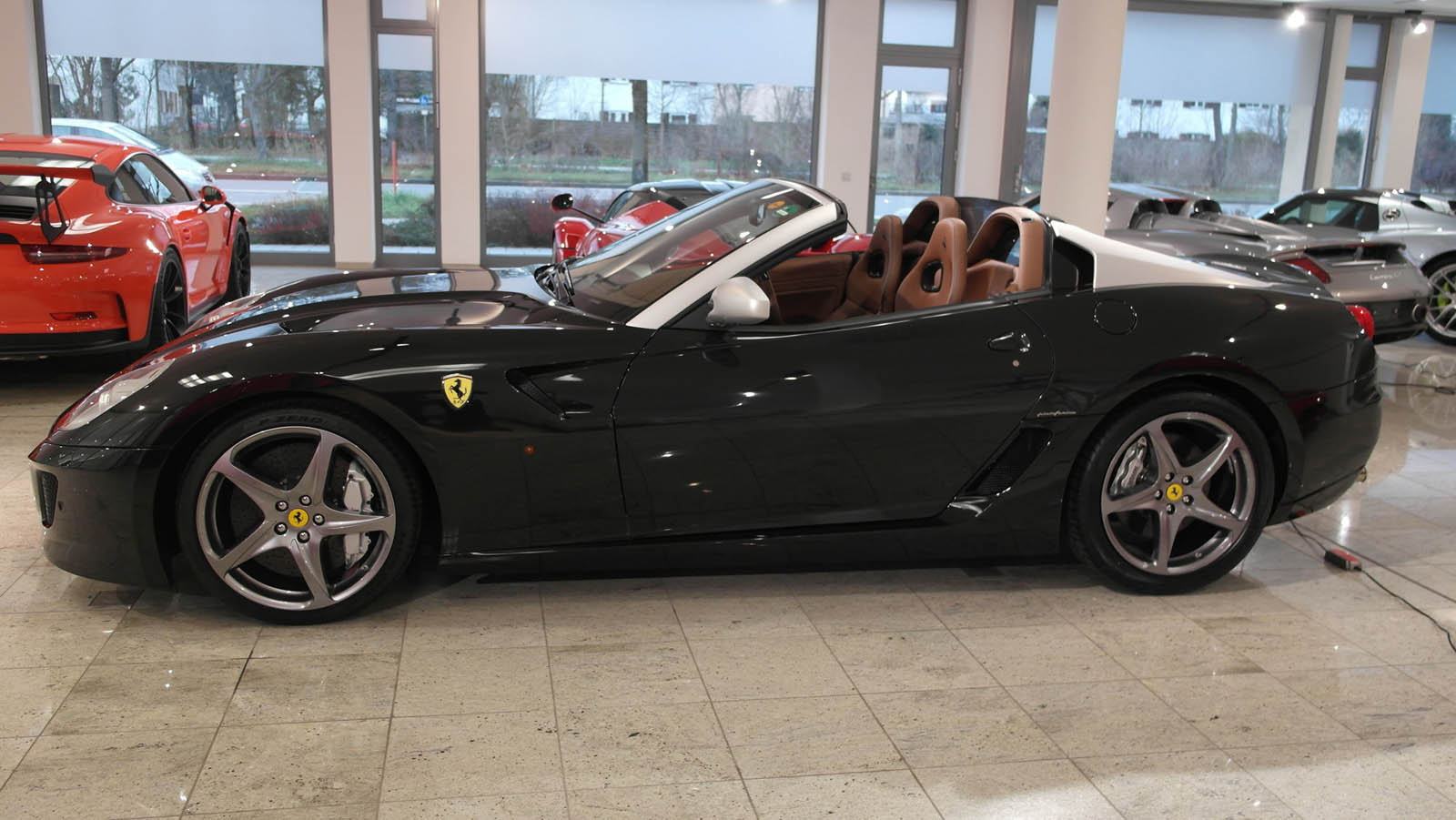For a little bit more, you could instead pick up a 2011 Ferrari 599 SA Aperta – one of just 80 such roadsters made. This one’s done up in black with a deep brown leather interior and has just 280 miles on the odometer. With a 6.0-liter naturally aspirated V12 good for 661 horsepower, it’s offered for sale Germany for €1.3 million – or a hair under $1.4 million at current exchange rates.
