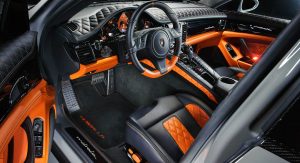 Enhanced aerodynamics come along with those beefy fenders, but the real magic can be found in the engine bay, where Gemball’s technicians have extracted 820 horsepower from the 3.8-liter twin-turbo flat-six. Performance figures, however, have not yet been released.