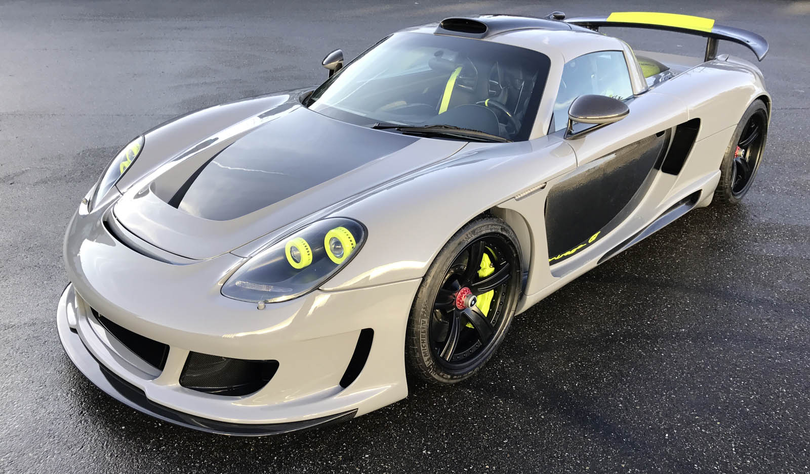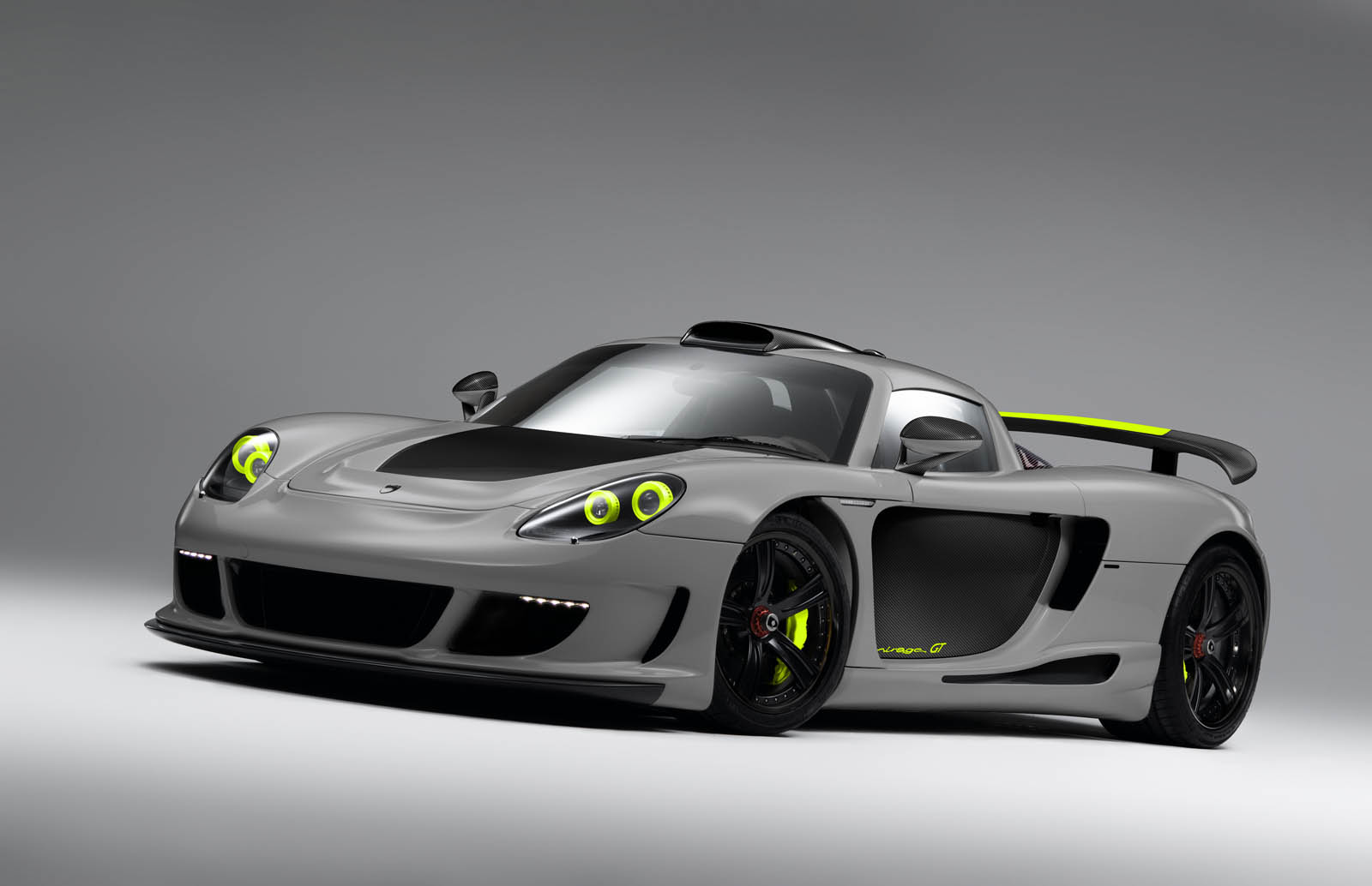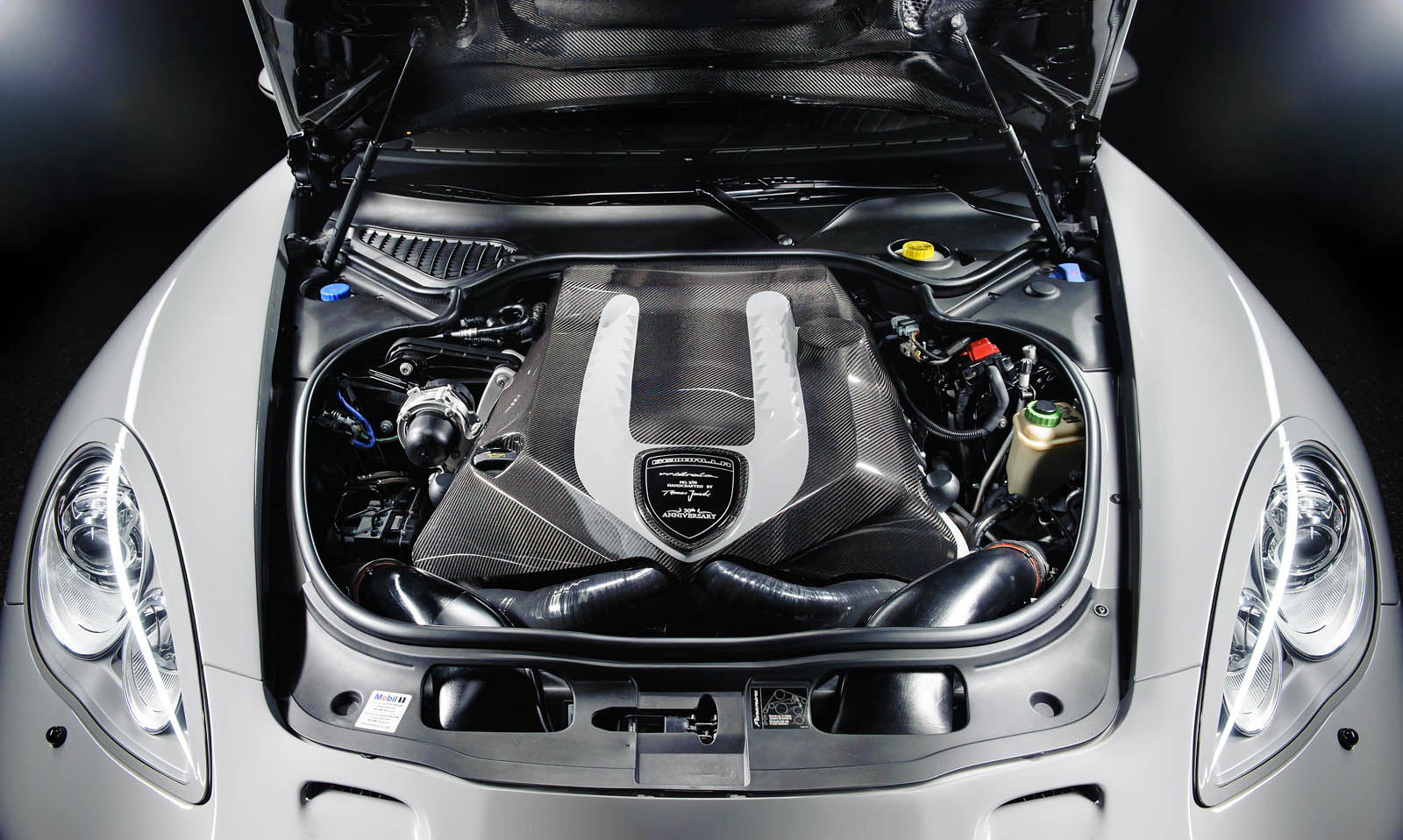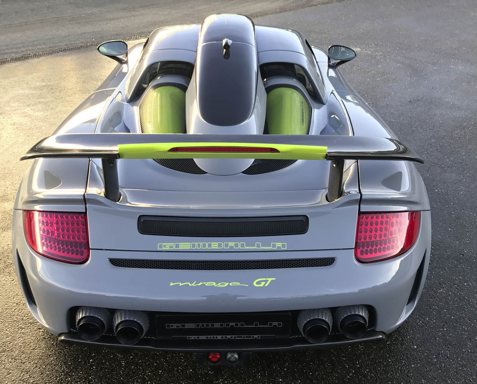 Last but certainly not least is the Mirage GT Carbon Edition. Based on the Porsche Carrera GT, it’s cloaked (as its name suggests) entirely in carbon fiber. But the modifications go much further than that. The 5.7-liter V10 has been retuned to deliver 670 hp, the suspension has been upgraded with height-adjustable coil-over shocks, and the wheels replaced with fresh forged units. Lacking the Panamera’s all-wheel traction, it takes this latest Mirage 3.7 seconds to reach 62 as it rockets to 208 mph.