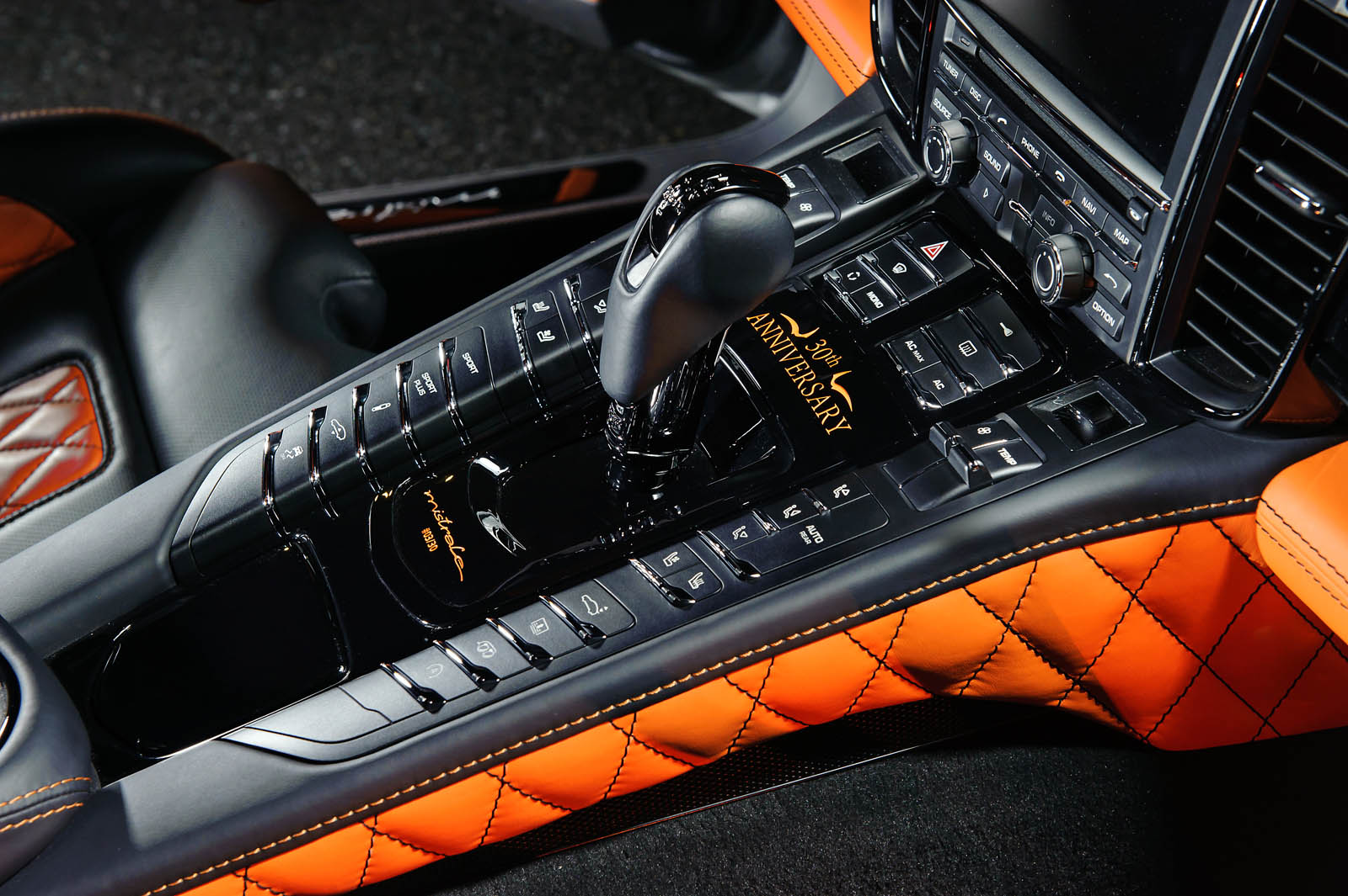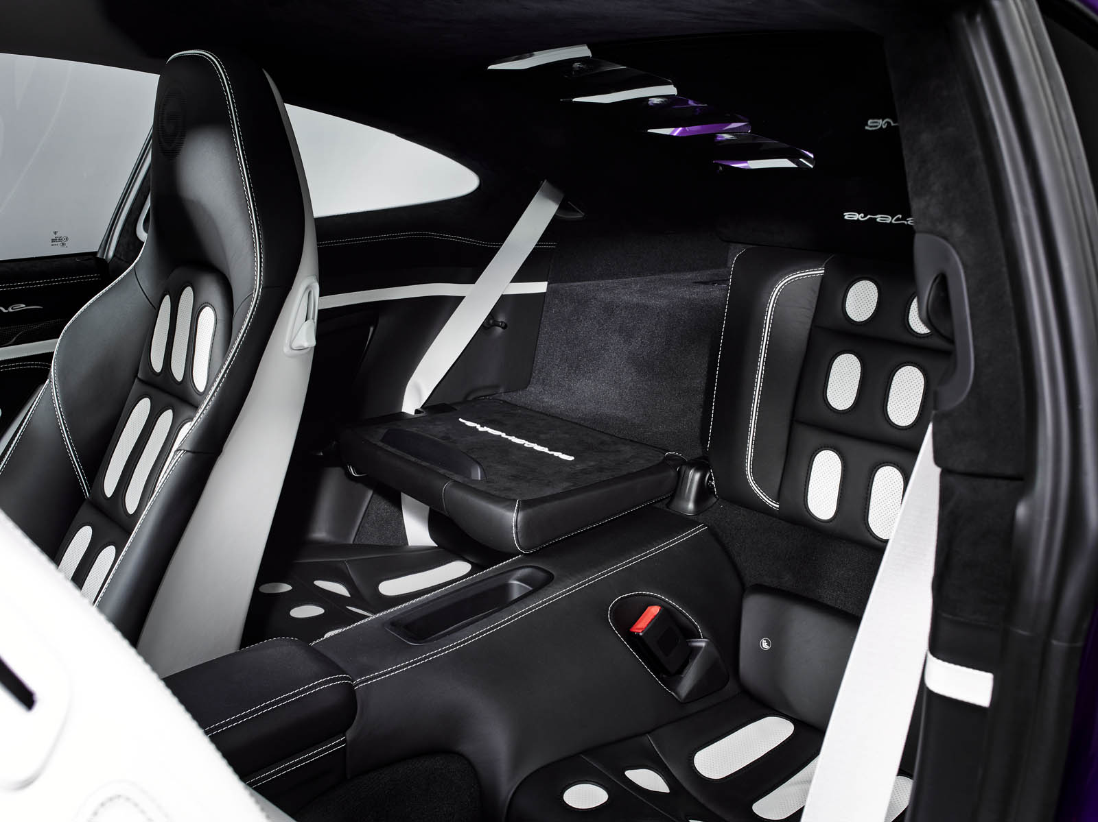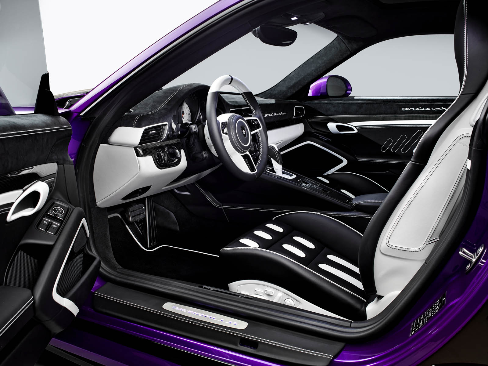Enhanced aerodynamics come along with those beefy fenders, but the real magic can be found in the engine bay, where Gemball’s technicians have extracted 820 horsepower from the 3.8-liter twin-turbo flat-six. Performance figures, however, have not yet been released.