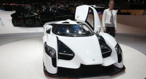The SCG003S (S for Stradale) is powered by a 4.4-liter twin-turbo V8 engine delivering 800 hp and 627 lb-ft (850 Nm) of torque. This allows the hypercar to hit 100 km/h (62 mph) in less than 3 seconds and a top speed of 350 km/h (217 mph). Coupled to the engine is a 7-speed sequential transmission.