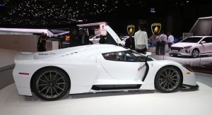 Alongside the road car at Geneva is the SCG00C (Competizione), the racing variant of the car.