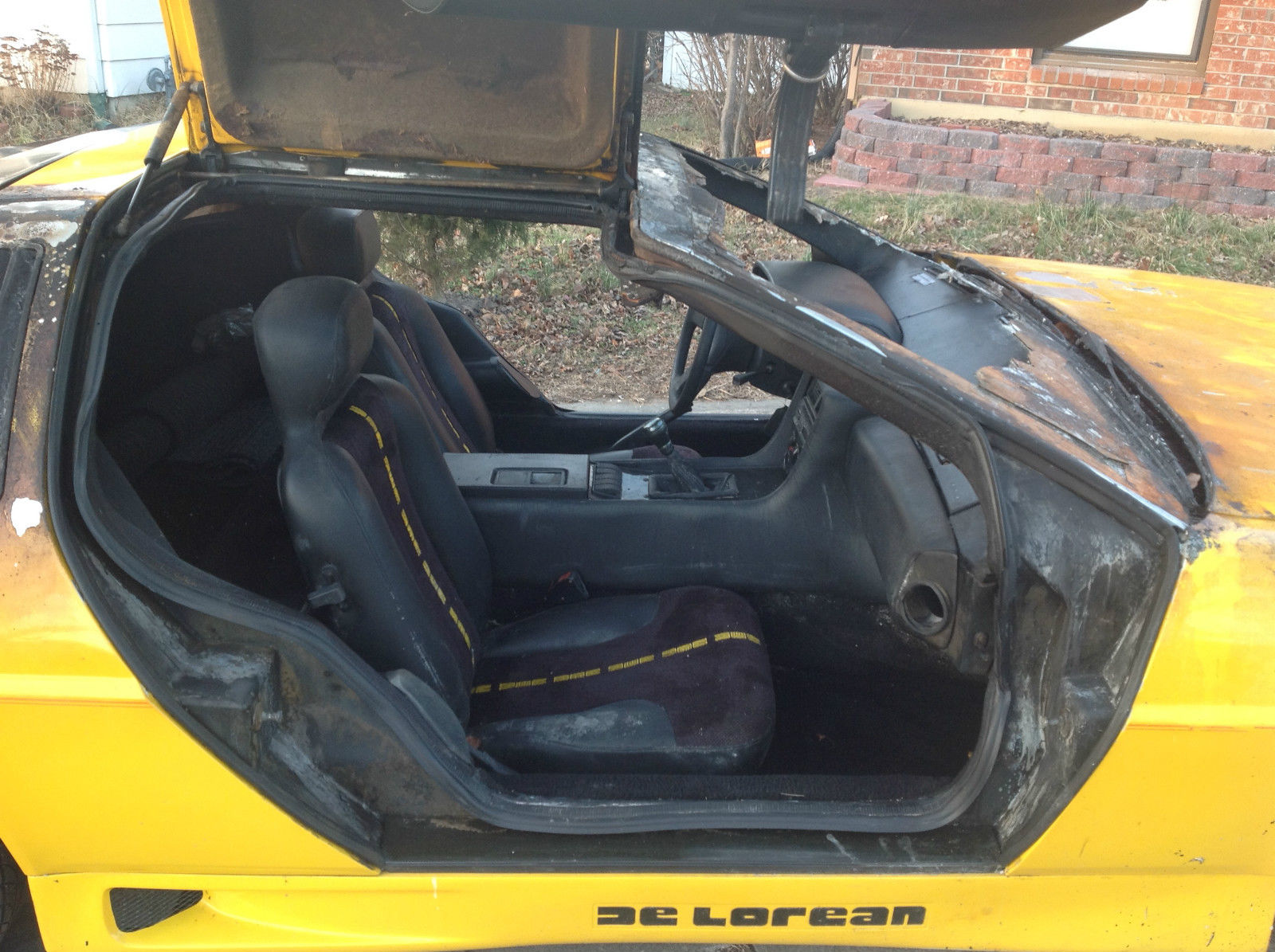 No, leaving a fire trail after leaping forwards or backwards in time isn’t what led to this car looking the way it did. It was something as simple and unfortunate as a garage fire that brought the car to its knees – though we wouldn’t quite call it unsalable yet.