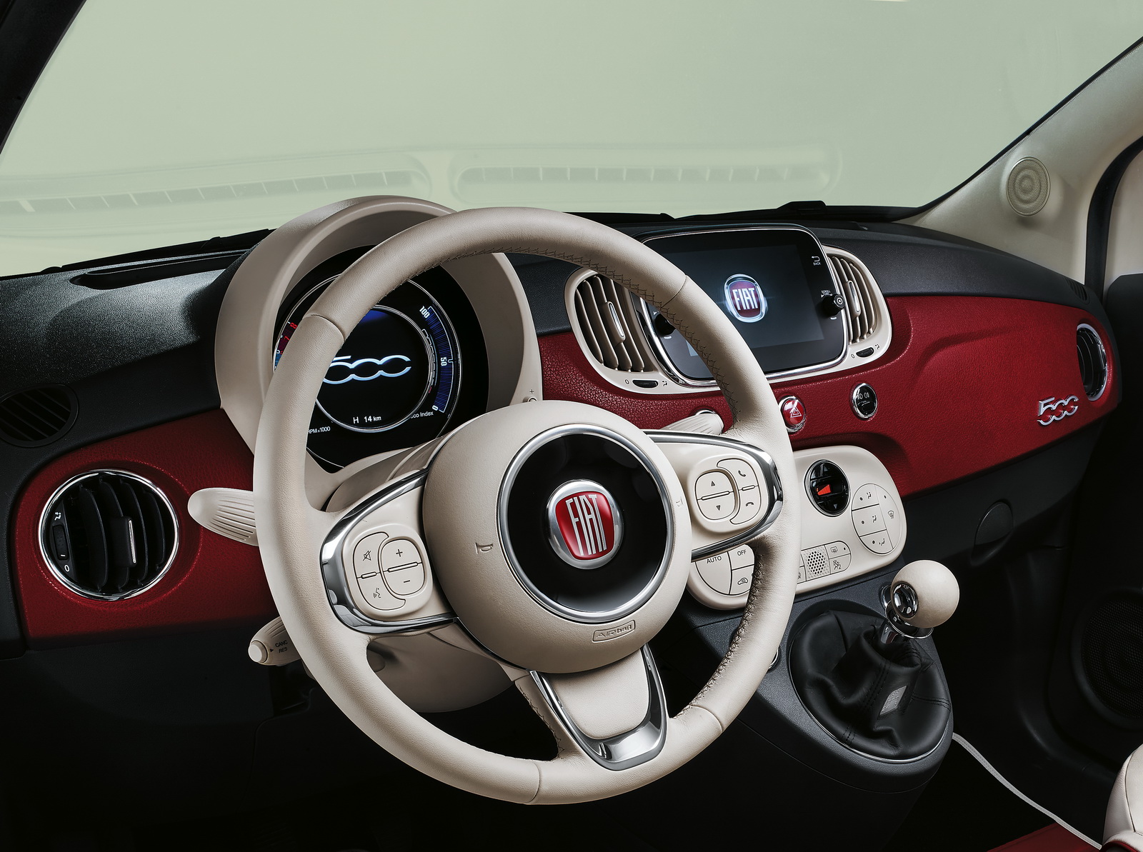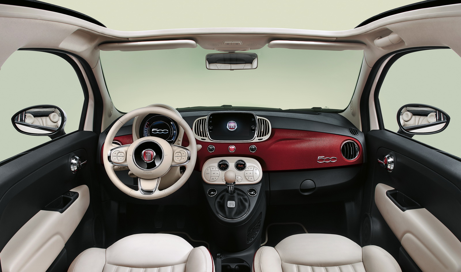 Ivory leather with contrasting burgundy seams, and dual-color floor mats have been applied inside, but even if the 500 Sessantesimo is paying tribute to the original 500, that doesn’t mean that it has to go back to basics.