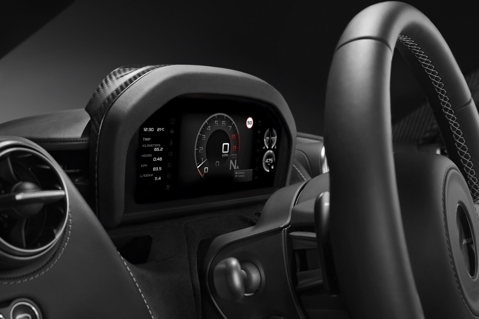 McLaren’s all-new driver interface provides a wealthy range of information when in ‘Full Display’ mode, with the format changing according to the selected driving mode, between Comfort, Sport and Track.