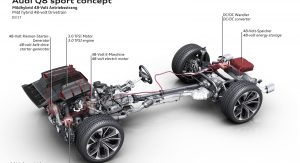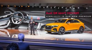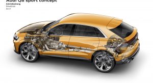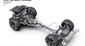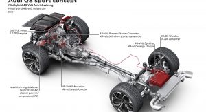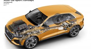 “The drive system of the Audi Q8 sport concept is a major step towards optimizing efficiency and sustainability in large-volume series production,” said Rupert Stadler, Chairman of the Board of Management at Audi. “The combination of mild hybrid technology and a TFSI engine sets a new benchmark for the synthesis of electromobility and combustion engines.”