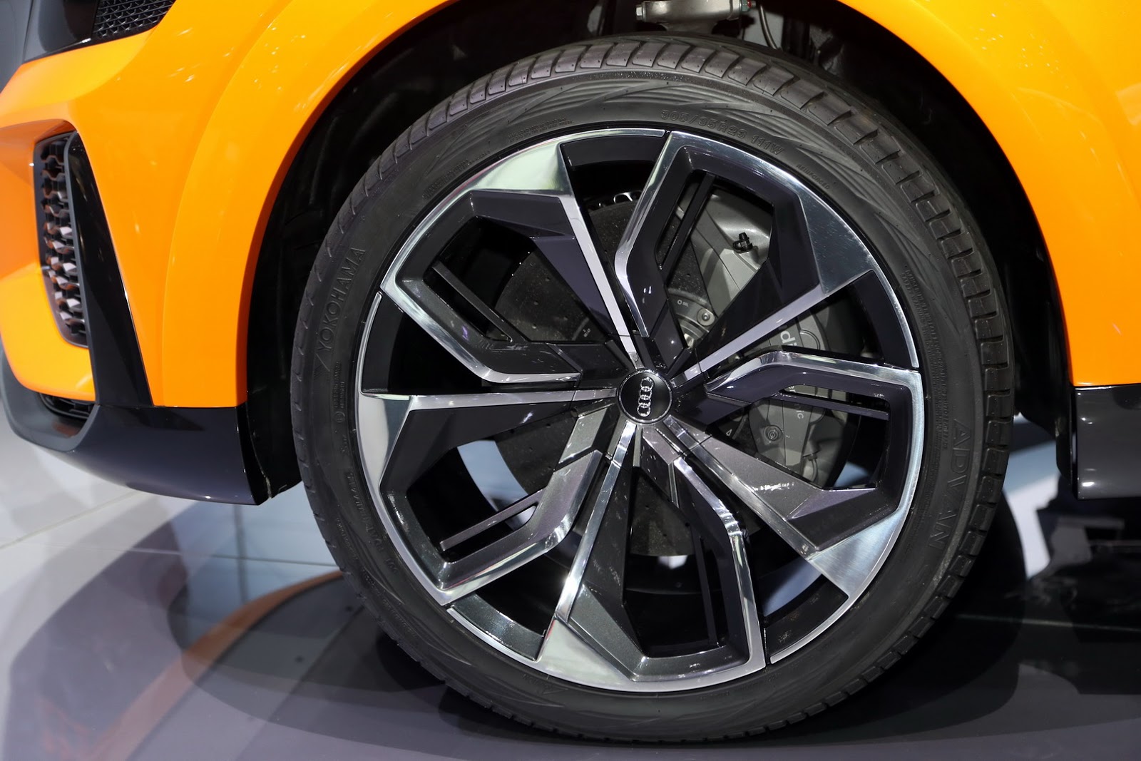 The concept rides on huge 23-inch alloys wrapped in 305/35 tires. The Q8 Sport also gets 20-inch(!) ceramic disc brakes while there are five levels of ground clearance with 90‑millimeter (3.5 in) height differences.
