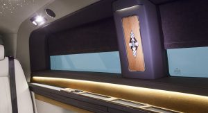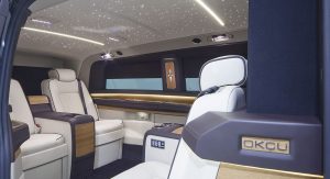 Elsewhere in the cabin is a coffee machine hidden between a center console as well as a small fridge. There’s also storage for wine and champagne glasses and perhaps most impressively of all, a Rolls-Royce inspired starlight headliner.