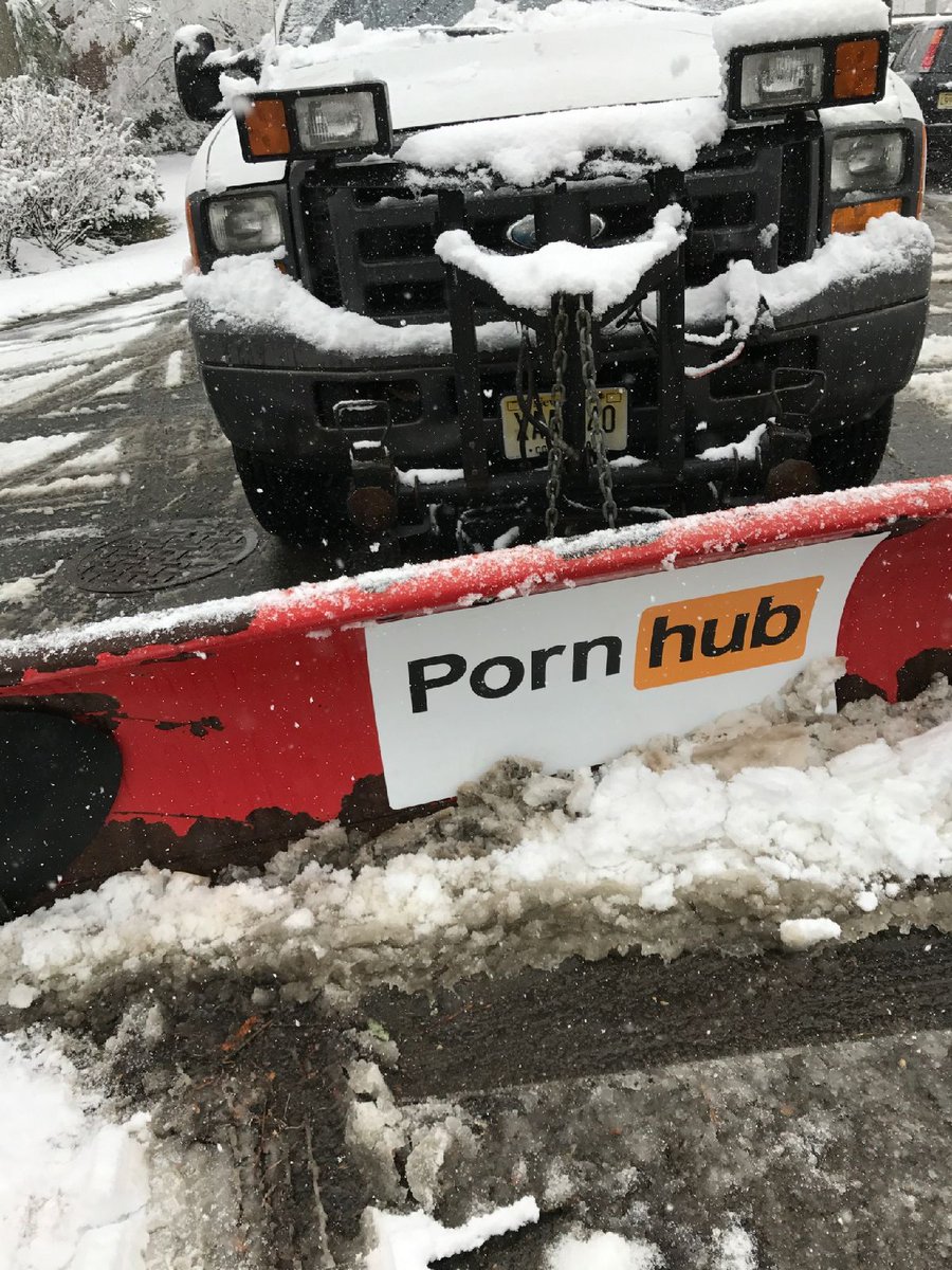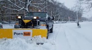 That company, oddly enough, is Pornhub. The online pornography portal hired a couple dozen plow trucks to clear snow off of public streets in New Jersey and the Boston area.
