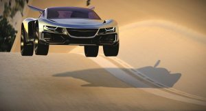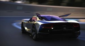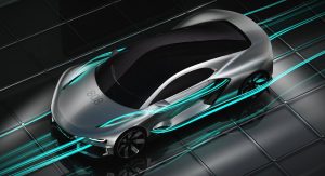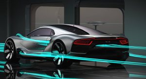At the front, the AiroX Autonomous Concept includes a relatively small grille but includes two massive air intakes and an angular front splitter that could scare off a number of particularly ferocious Lamborghinis. There’s also a set of demonic LED headlights while the sides includes large intakes, razor-thin wing mirrors and sharp side skirts. The rear meanwhile incorporates LED taillights and a glass engine cover that includes two hydraulically-controlled flaps to influence downforce.