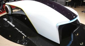 Presented on the publication’s stand at the Geneva Motor Show, the Scilla concept is about the size of a Ferrari 488, but sits more than four inches lower to the ground. That streamlined shape is envisioned to encapsulate two occupants in a 1+1 layout like an old fighter jet. Each wheel is designed to house an individual electric motor, with semi-autonomous capabilities.