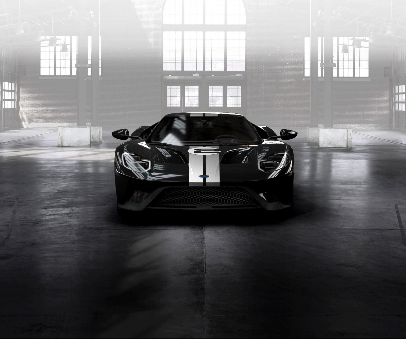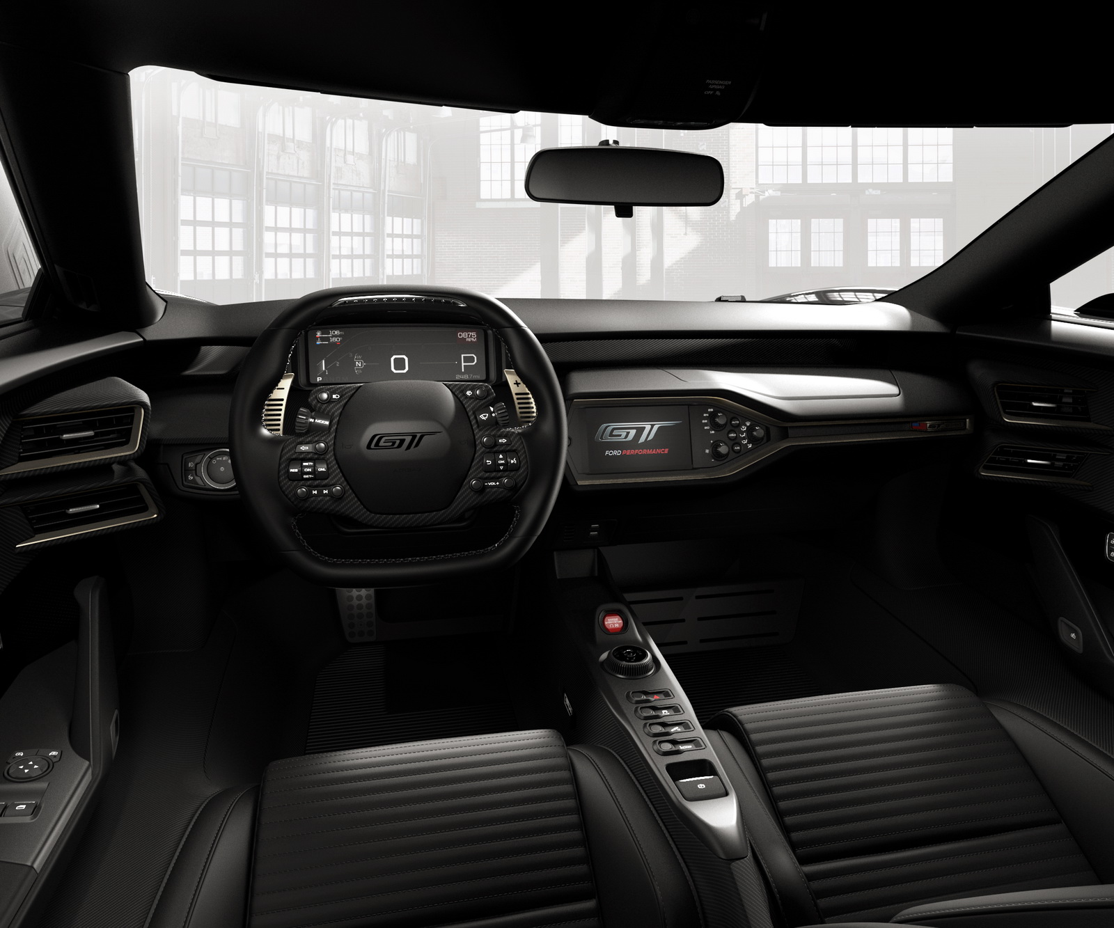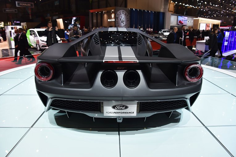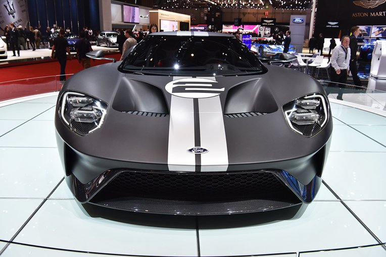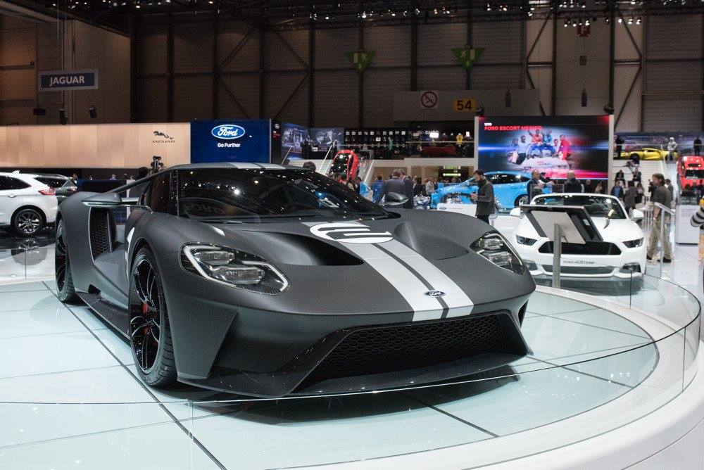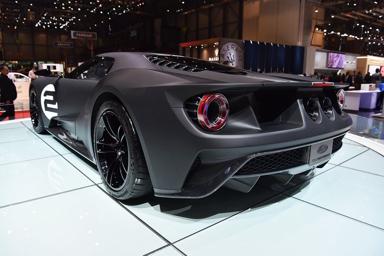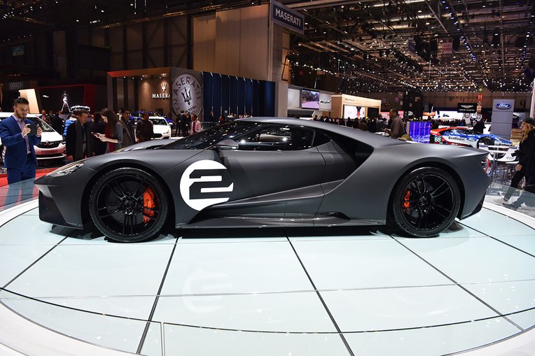 This car right here was built in honor of the classic GT40 Mark II driven by Bruce McLaren and Chris Amon during the 1966 Le Mans race over 50 years ago. Visually, what separates it from its regular-production sibling is the Shadow Black exterior finish, for starters. You can get it in both gloss or matte, with the latter being on display in Geneva.