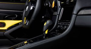 TechArt has also fitted the GTstreet R cab with an active aero kit (punctuated by that giant rear wing) to increase downforce, reduce lift, and improve cooling to the water and oil coolers. It’s also replaced key body panels (like the front fenders and hood) with carbon fiber, fitted 20-inch forged alloys to an active coilover suspension (complete with nose lift feature), upgraded the exhaust system, and re-trimmed the interior in leather and Alcantara.
